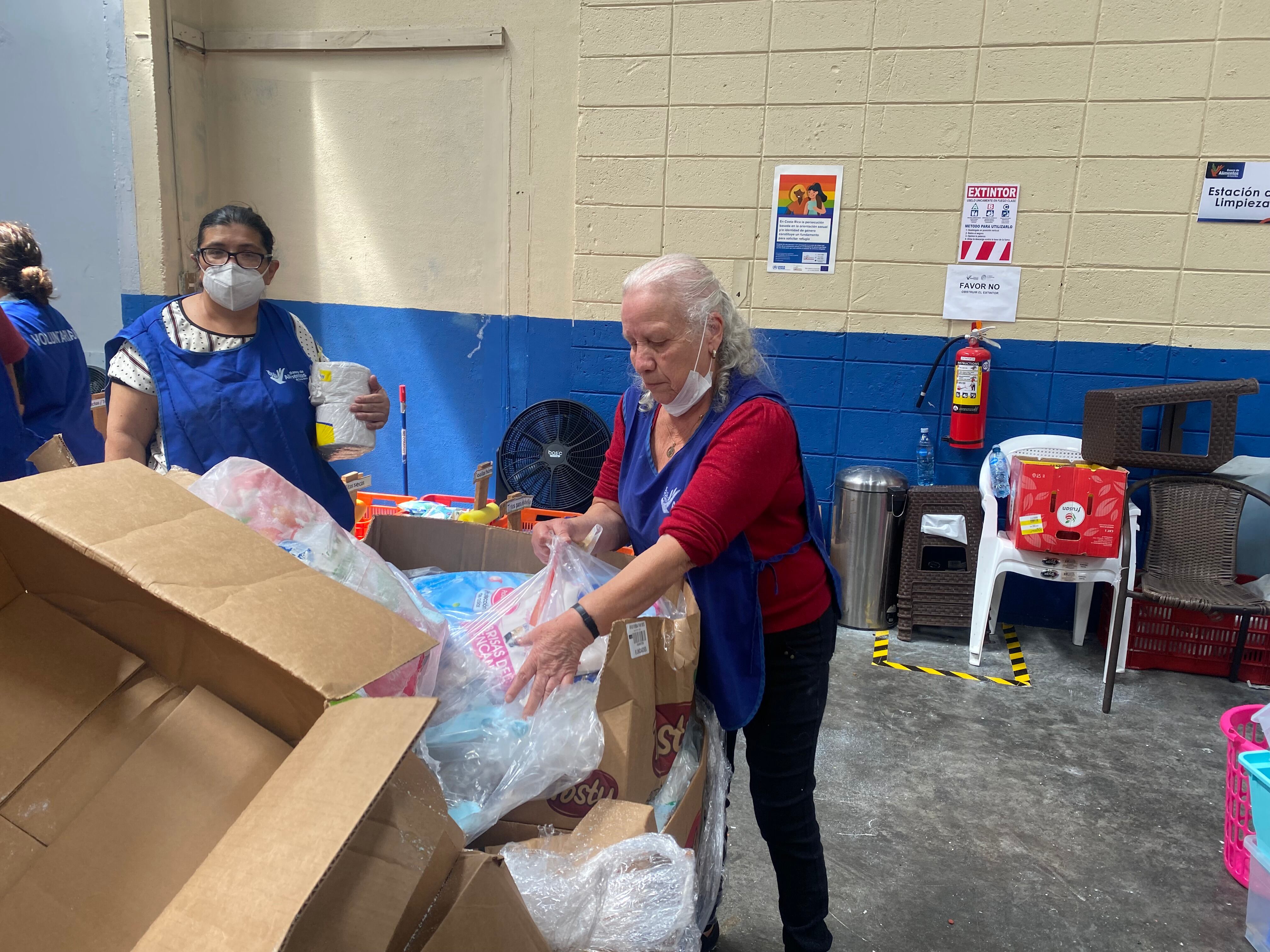 Doña Flor, vecina de El Llano, Alajuelita, es voluntaria por gusto y agradecimiento. Le gusta servir a los demás y también reconoce el valor del Banco de Alimentos: cuando más lo necesitó, ella recibió ayuda por medio de Fundeso (organización que tiene un albergue gratuito para pacientes de cáncer de mama que viven lejos y vienen a los hospitales centrales a recibir su tratamiento oncológico), una de las 316 organizaciones sin fines de lucro que se benefician de este proyecto que nació hace 10 años con la intención de aprovechar toneladas de alimentos de primera necesidad que muchas veces tienen como destino el basurero.