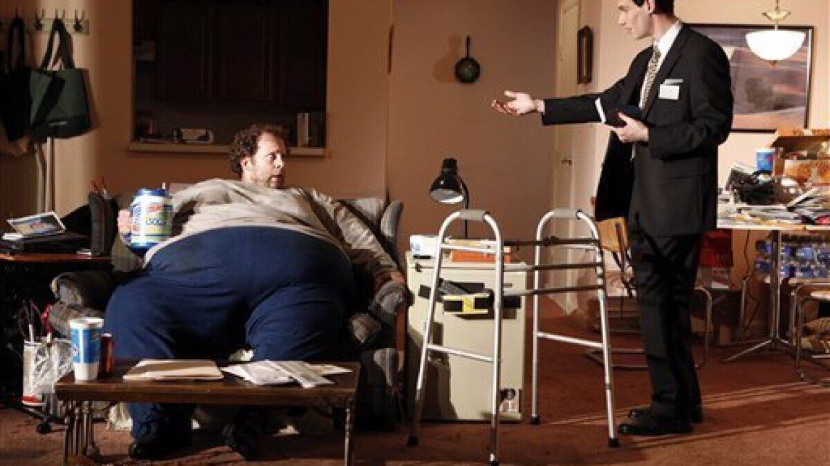 Sin embargo, en medio de su lucha interna, el protagonista intenta suicidarse poco a poco, comiendo desaforadamente hasta convertir su obesidad mórbida en un tema digno de un reality show.