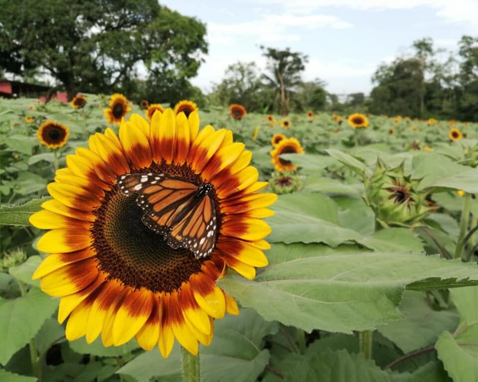 Aquí llegan lapas, tucanes, mariposas y ranitas de colores. Es bonito porque no solo los girasoles son protagonistas, sino que también la naturaleza que la gente puede apreciar”.