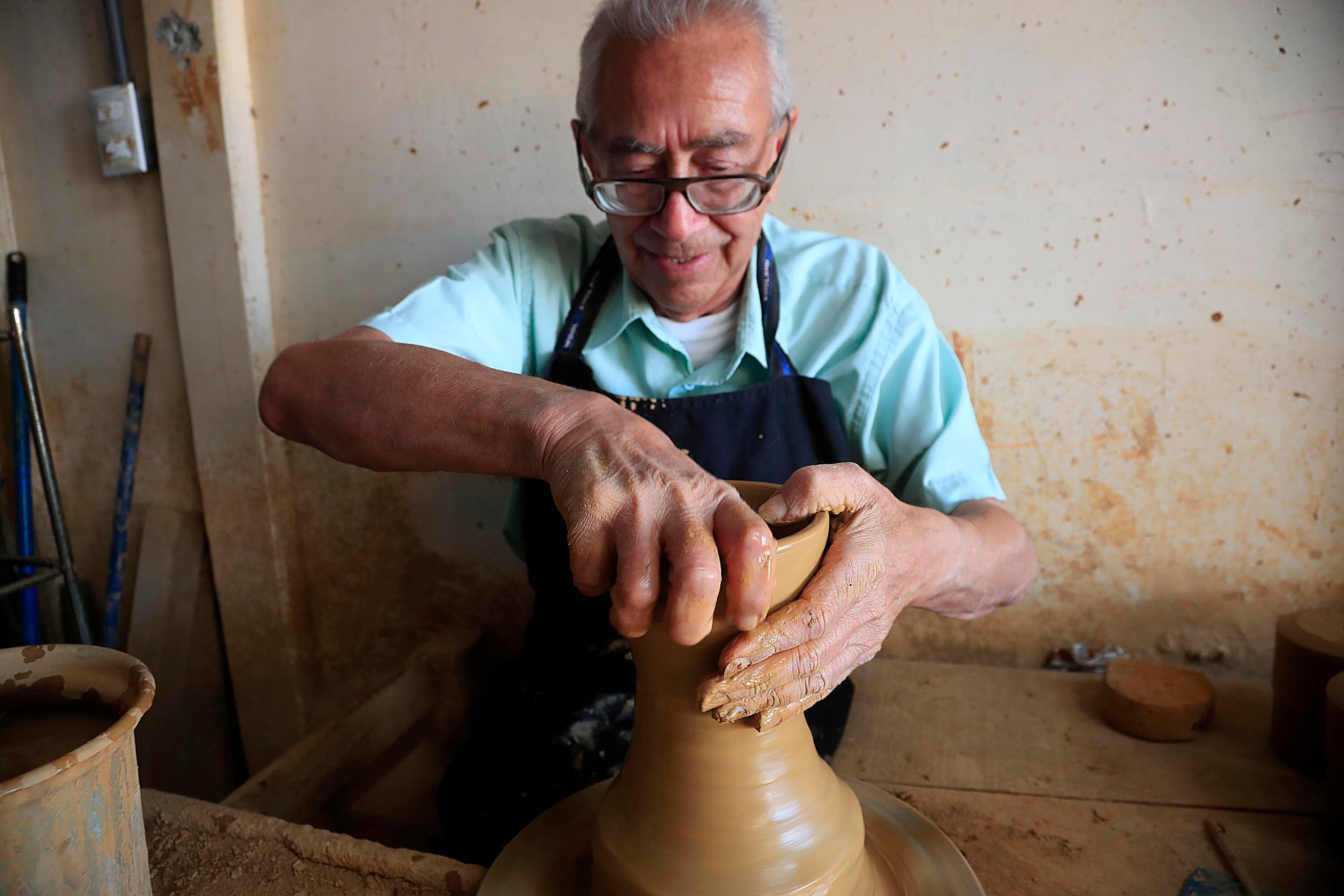 Con seis décadas en este oficio, este alfarero es uno de los guardianes de esta tradición en ese cantón josefino. Desde pequeñito, estaba fascinado con la arcilla y siempre pasaba al taller de la familia Hernández cuando salía de la escuela. Pasaron los años y contrataron al jovencito para hacer mandados.