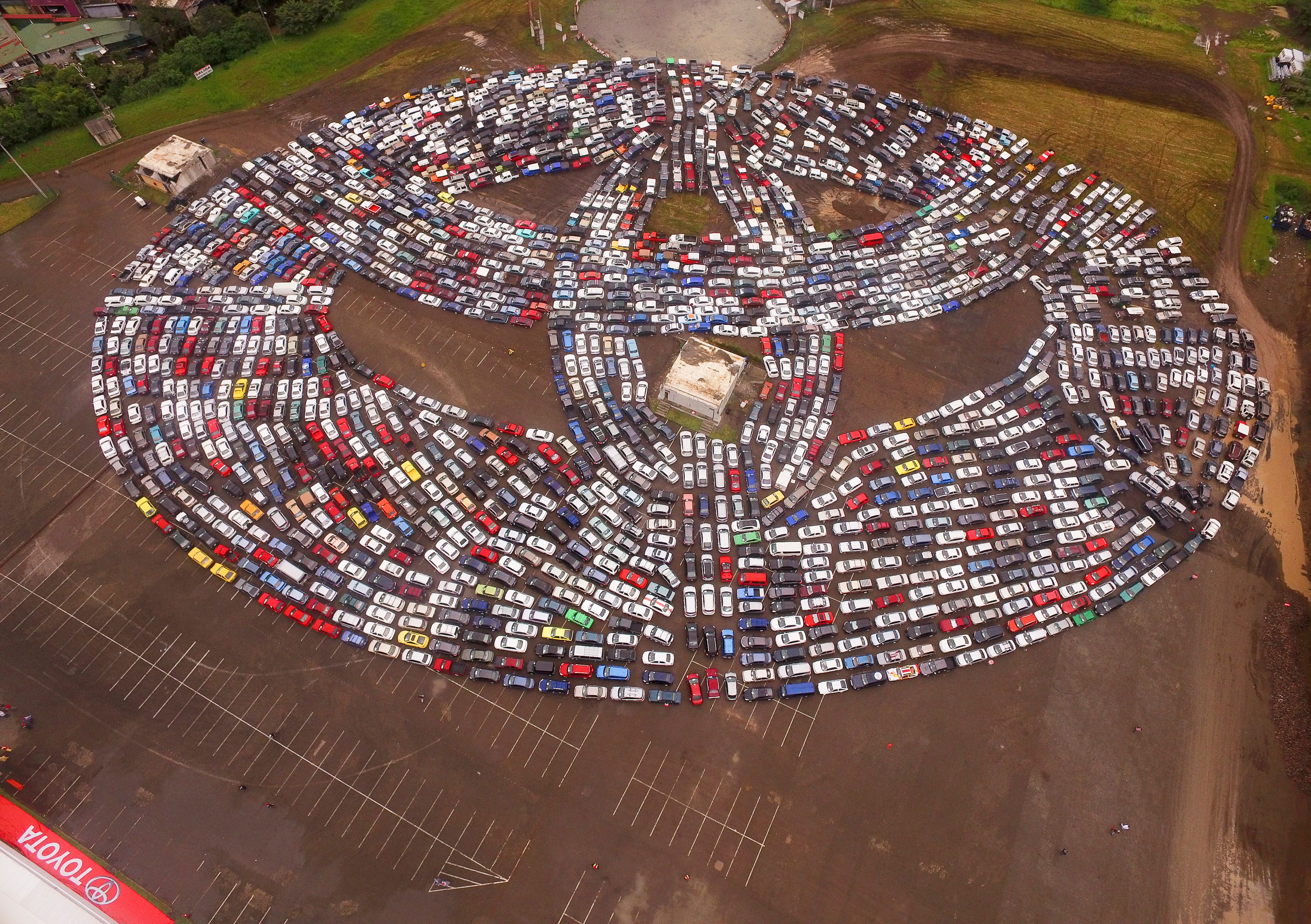 En octubre del 2017 lograron convocar a 1600 carros para formar con cada uno de ellos el logo de la marca Toyota, que se convirtió en el más grande del mundo y le arrebató así el reconocimiento a Rusia, donde armaron el elipse con 1416 vehículos en el 2016.