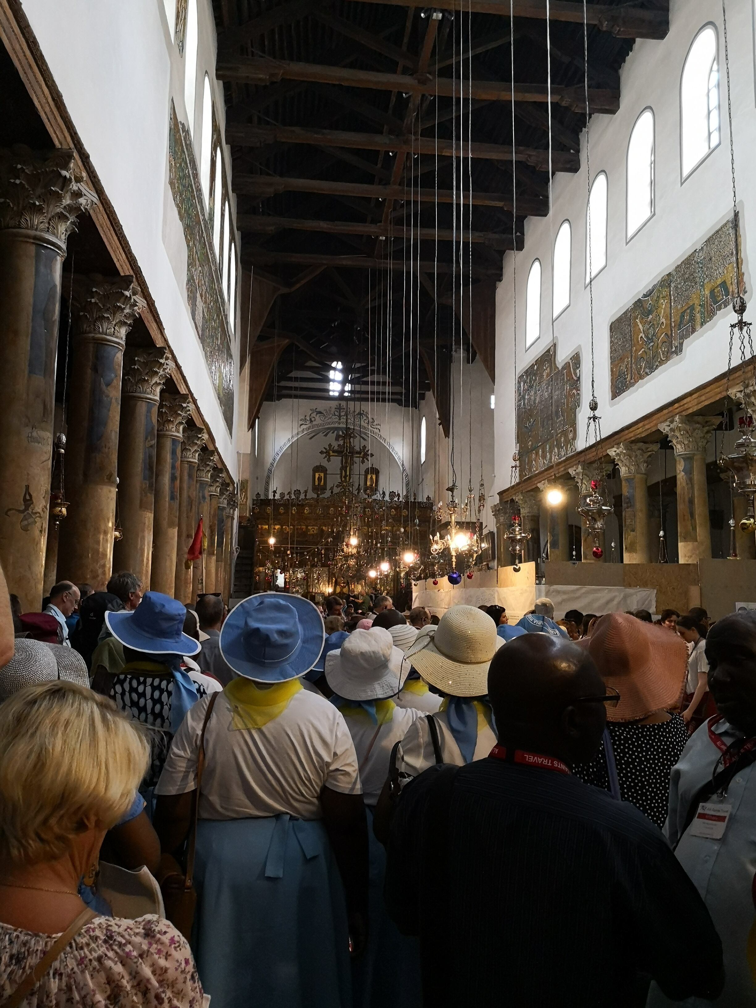 El centro de Belén, que tiene como foco turístico el sitio donde nació Jesús, es una ciudad de altas edificaciones, pintada en un solo color crema que se extiende imponente. Las calles son estrechas y cerca de la Iglesia de la Natividad resulta imposible parquear, por lo que el bus turístico debe estacionar en un centro comercial que queda a unas cinco cuadras de la iglesia.