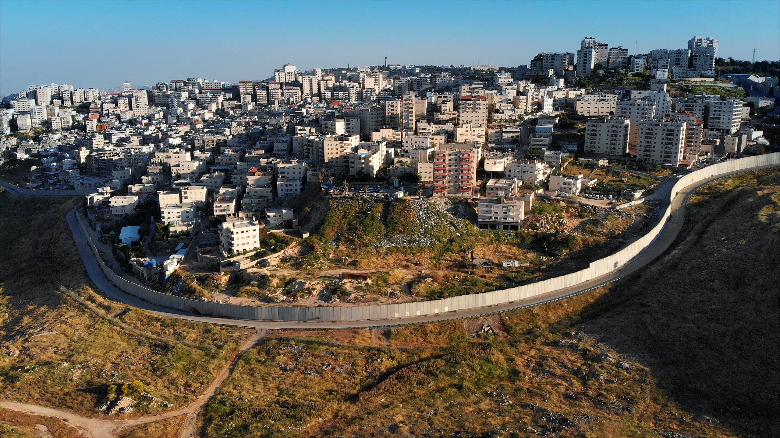 Una vez superada la barrera, Cisjordania deja ver sus diferencias con Israel: las construcciones verticales son rectangulares, el clima se siente más árido y las carreteras se vislumbran aún más largas.