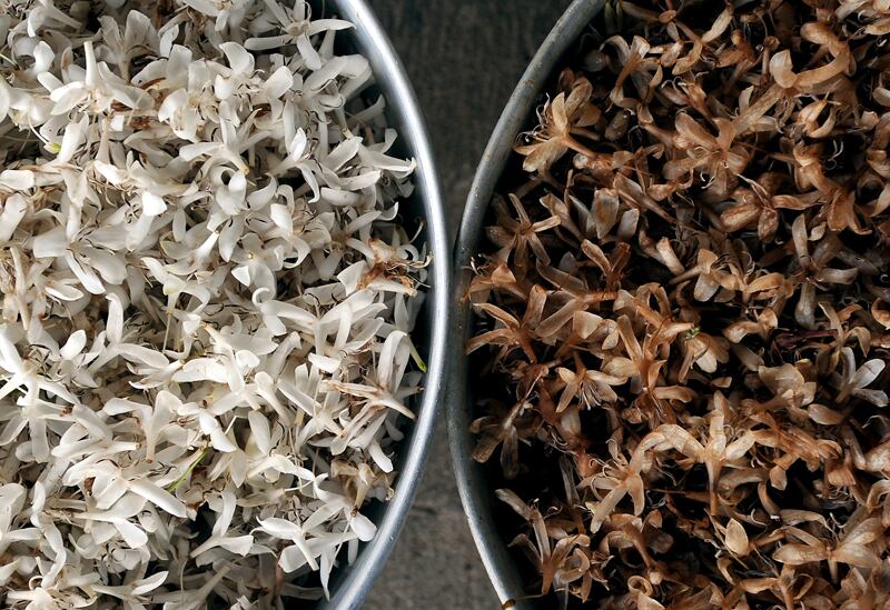 Diez años más tarde, en aquella misma finca, 30 mujeres de la zona siguen recogiendo en canastas de plástico los kilos de diminutas flores blancas.