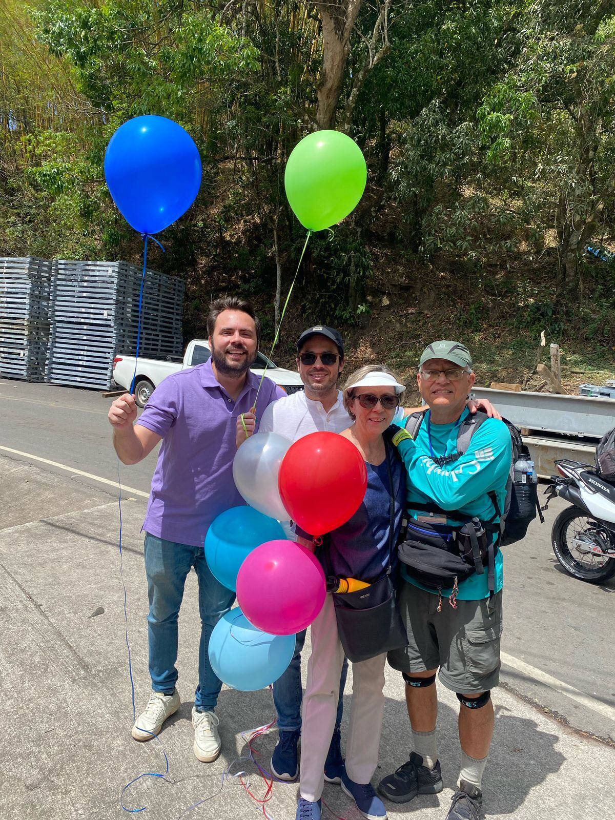 Madriz terminó de caminar a eso de las 11 a. m. Sus seres queridos lo esperaban al final con los brazos abiertos y una celebración que incluyó globos, aplausos, besos y abrazos. Todos fueron a almorzar para festejar la culminación de la aventura.