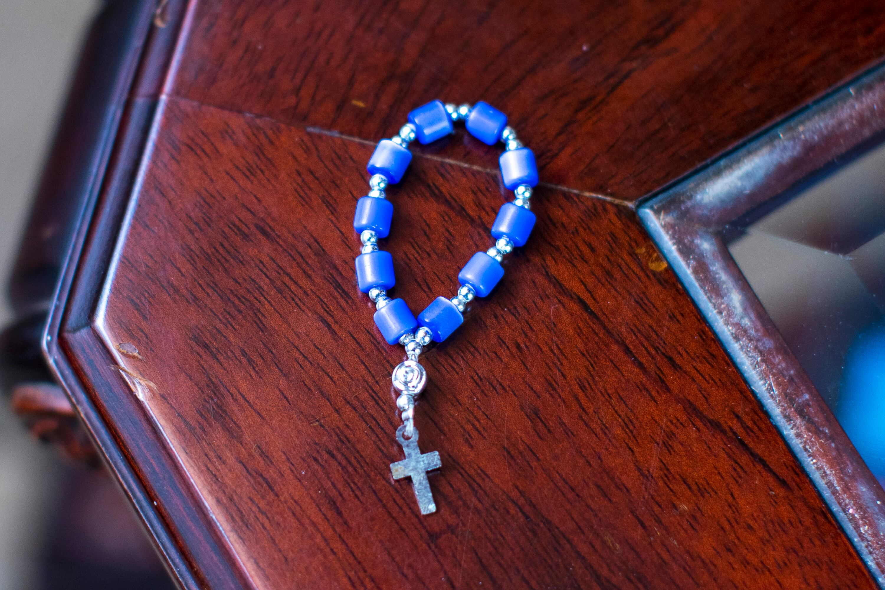 “Paró un carro del ICE, se bajó un muchacho y me preguntó que a dónde caminaba, porque me habían visto hacía unos días en Guanacaste. Me felicitó y me preguntó si me podía hacer un regalo. Me dijo ‘yo no sé de qué religión es usted, pero le voy a dar esto para que lo acompañe’. El regalo fue un rosario pequeñito de color azul que se convirtió en un elemento simbólico, es la personificación de cuánta gente buena hay en nuestro camino”.