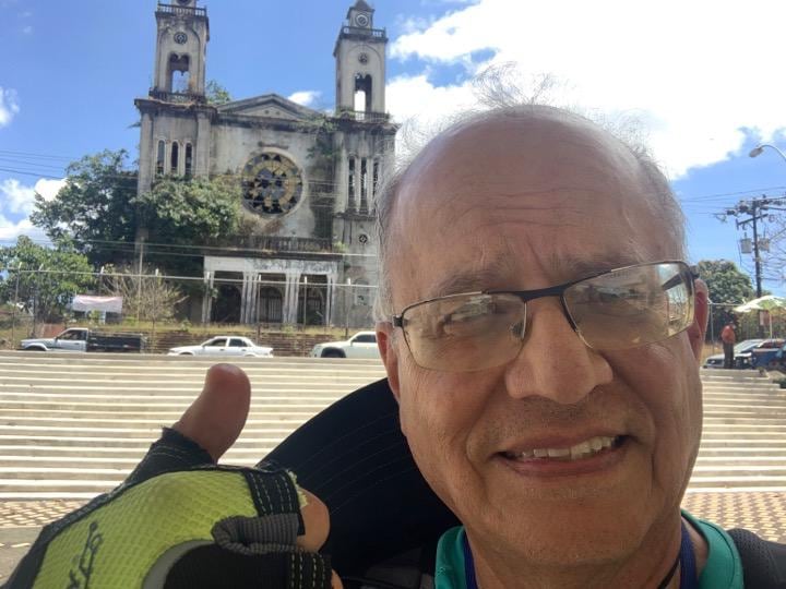 El último tirón para llegar a la iglesia de Santiago de Puriscal fue de 11 kilómetros y los recorrió en dos horas y media. Lamentablemente la parroquia está en abandono, debido a que se dañó en un terremoto, por lo tanto no pudo entrar al edificio.