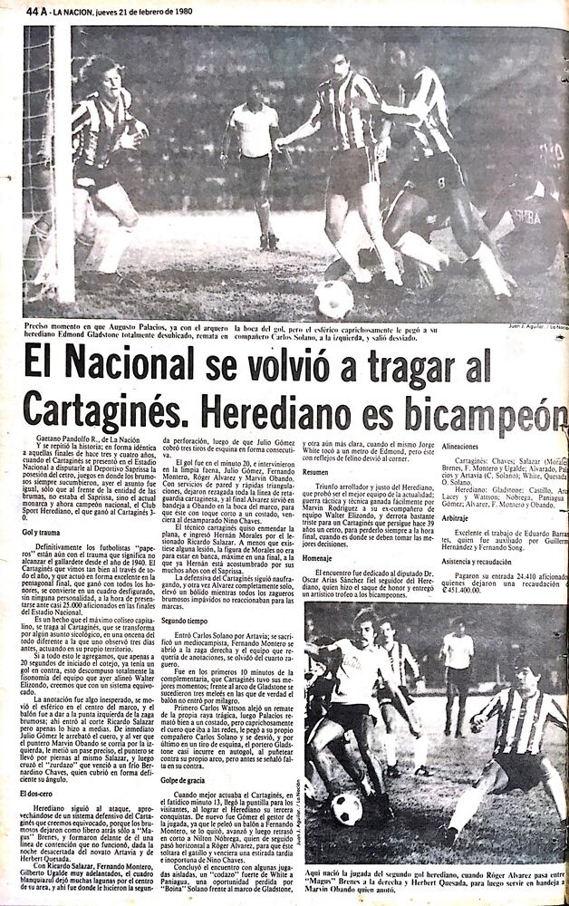 “No era necesario hacer preguntas. El periodismo a veces debe abstenerse de ello en situaciones tan difíciles. Hacer lo contrario habría sido un pecado deportivo”. Así lo describió el periodista Ricardo Quirós (ya fallecido) en 1980, año en que Cartaginés perdió la final contra Heredia en el Estadio Nacional.