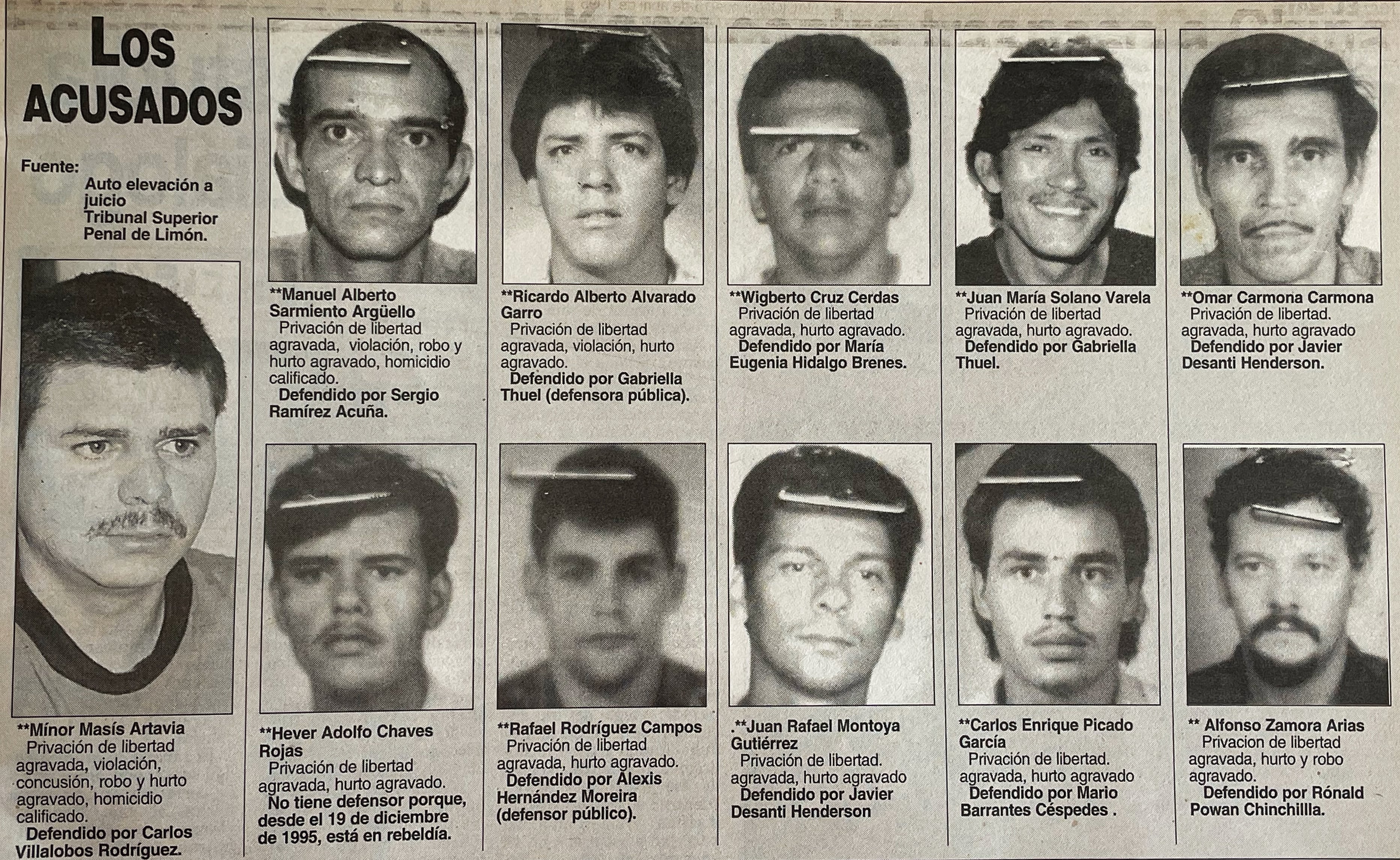 En abril de 1996 el comando enfrentó a la justicia. Los testigos y ofendidos fueron trasladados en helicóptero hasta la sala de debates del Tribunal Superior Penal de Limón.