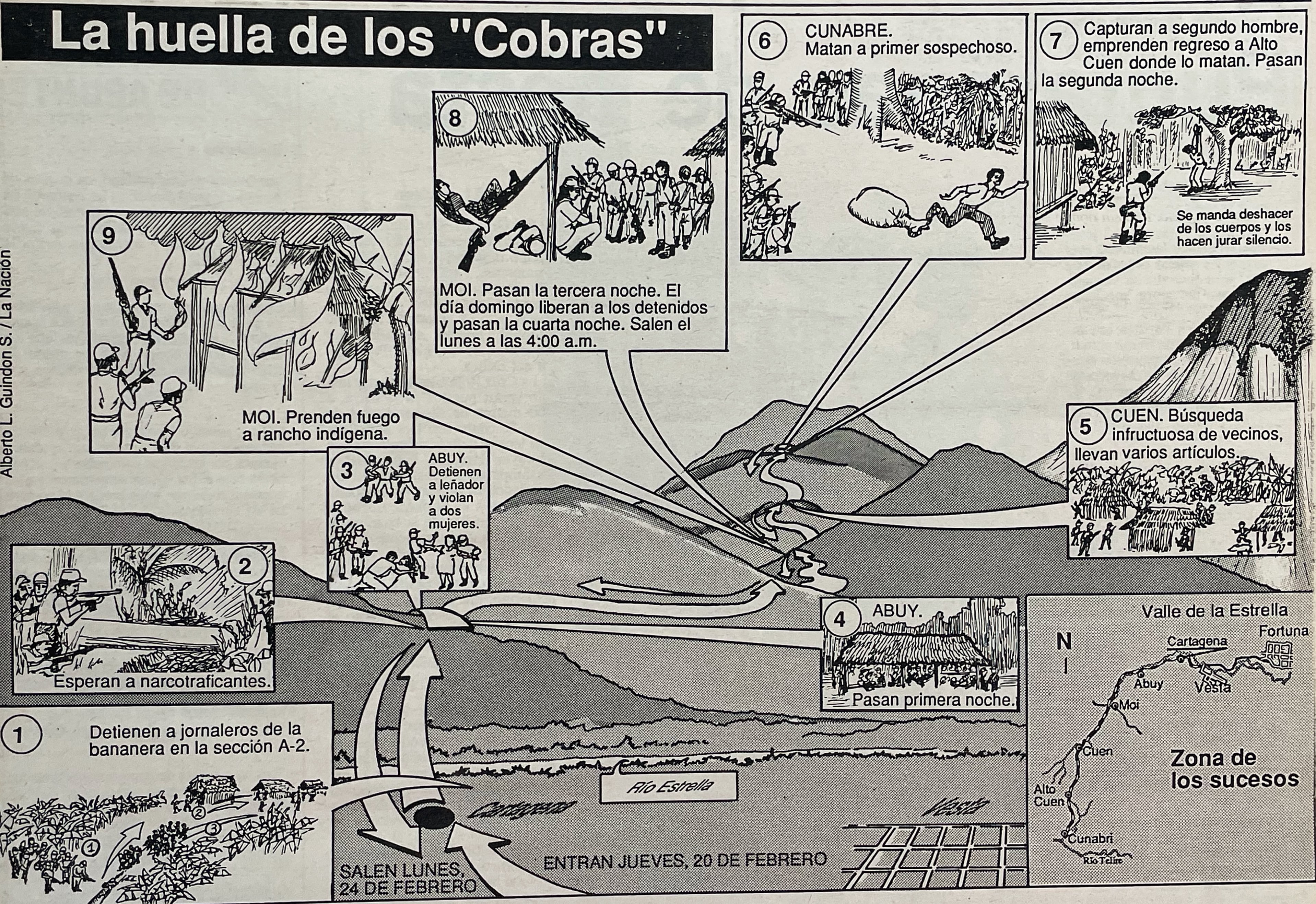 Los hechos de Talamanca tardaron cinco días en darse a conocer de manera pública. Fue hasta el miércoles 26 de febrero que la prensa daba nota de la muerte de los dos hombres y ahí comenzó a sonar el nombre de Comando Cobra, un grupo de oficiales de la GAR que estaban encargados de combatir el narcotráfico pero en su lugar cometieron crímenes que luego fueron castigados con penas de cárcel y hasta con el señalamiento de la Comisión Costarricense de Derechos Humanos, la cual denunció que se pudieron evitar los abusos cometidos por el comando, entre ellos violaciones y maltrato de niños, según informó La Nación en su cobertura.