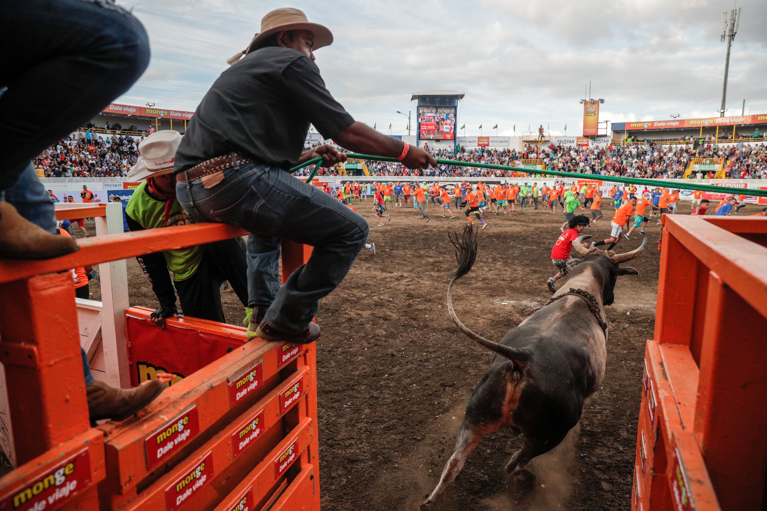 Tan rápido como sale el toro, los encargados del toril también se asoman velozmente para ver al animal en acción. Los trabajadores de la Hacienda Santa Marta, de Santa Cruz de Guanacaste, mostraban su orgullo por el impacto que tuvo la bestia al abrir plaza; disfrutaron unos segundos del espectáculo y volvieron a sus labores casi de inmediato porque había que preparar al siguiente toro.
