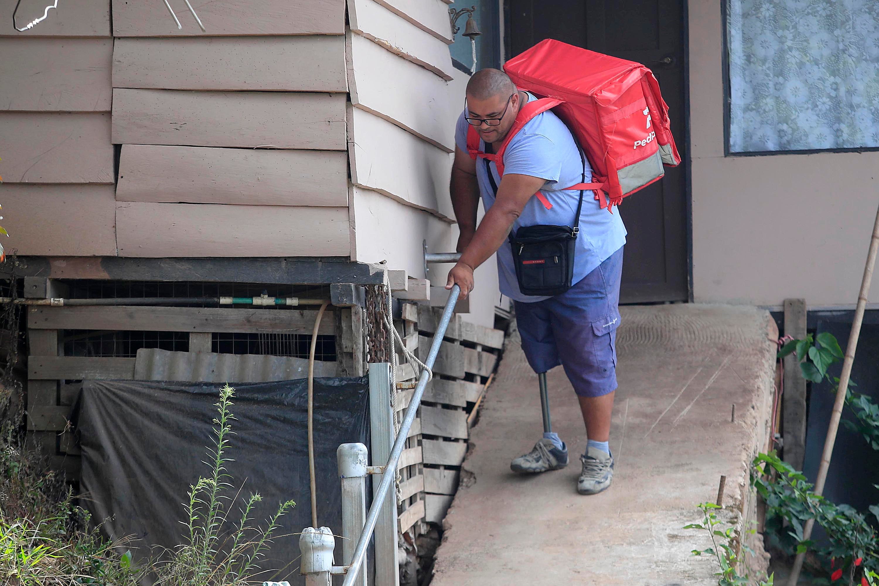 Desde hace un año, don Jorge empezó a colaborar como repartidor de empresas de delivery, labor que legalmente no es vista como un empleo formal. Ahora mismo es parte de Pedidos Ya, y se pasó a esa plataforma porque dice que le salían más viajes. Antes estuvo con Didi y Uber Eats.