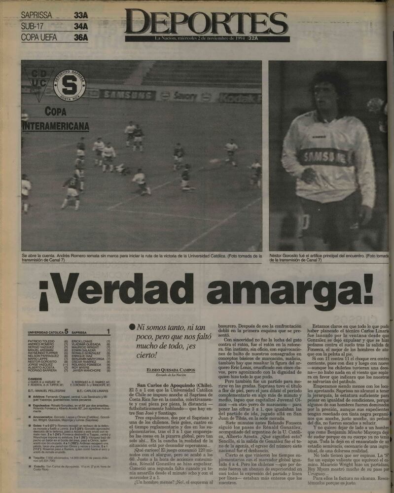 Este diario también le narró a los lectores los dos intentos de la S por imponerse ante los del Sur. Primero, en 1994, contra los chilenos, cuando la gesta parecía accesible, luego del gane 3 a 1 en la Cueva; no obstante, todo acabó con un final amargo en tiempos extra con un 5 a 1.
