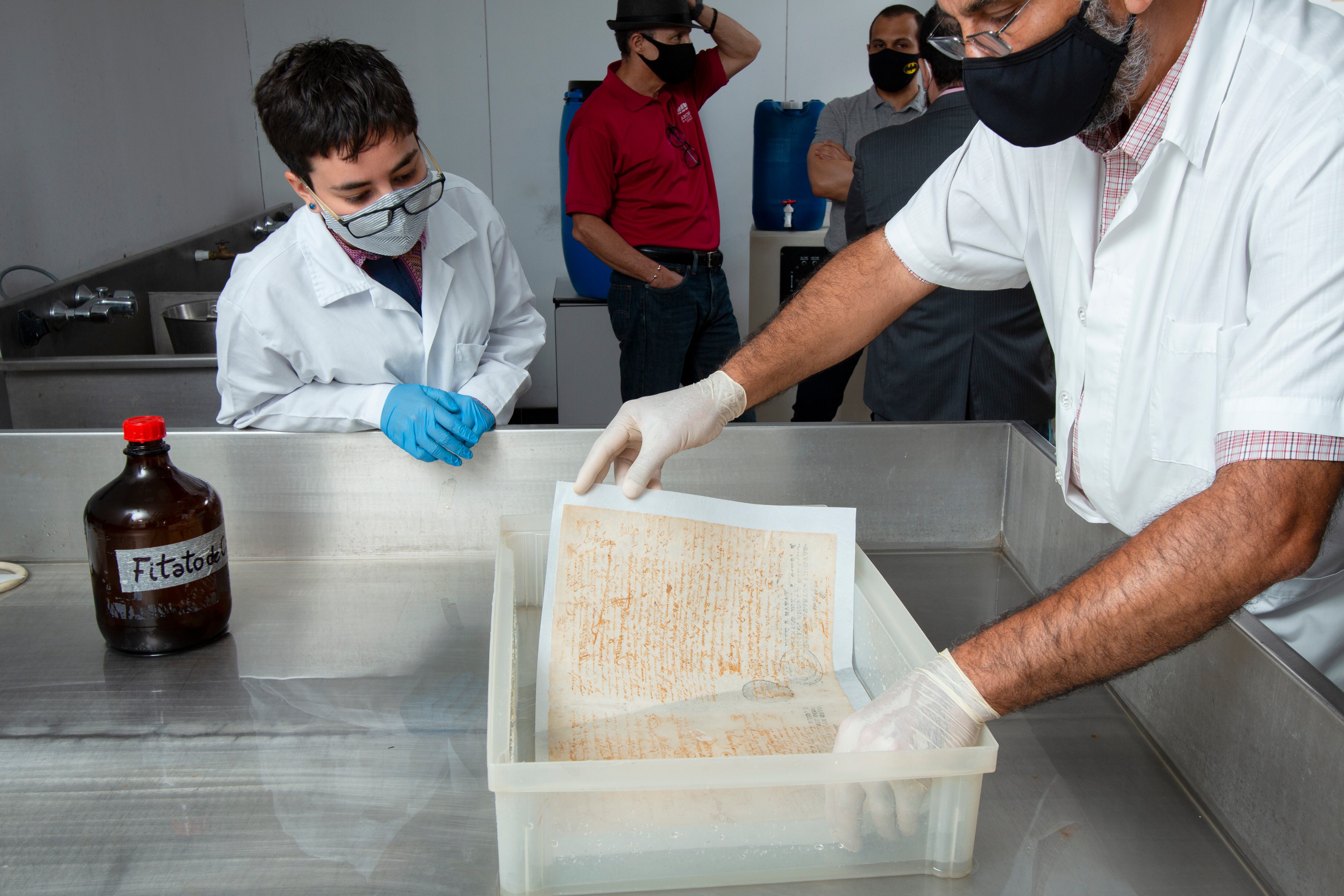 Lo primero que hicieron fue determinar de qué estaba compuesto el documento y, tras múltiples pruebas, aplicaron procesos químicos que revirtieron la oxidación. Posteriormente, con otra fórmula, le quitaron la acidez.