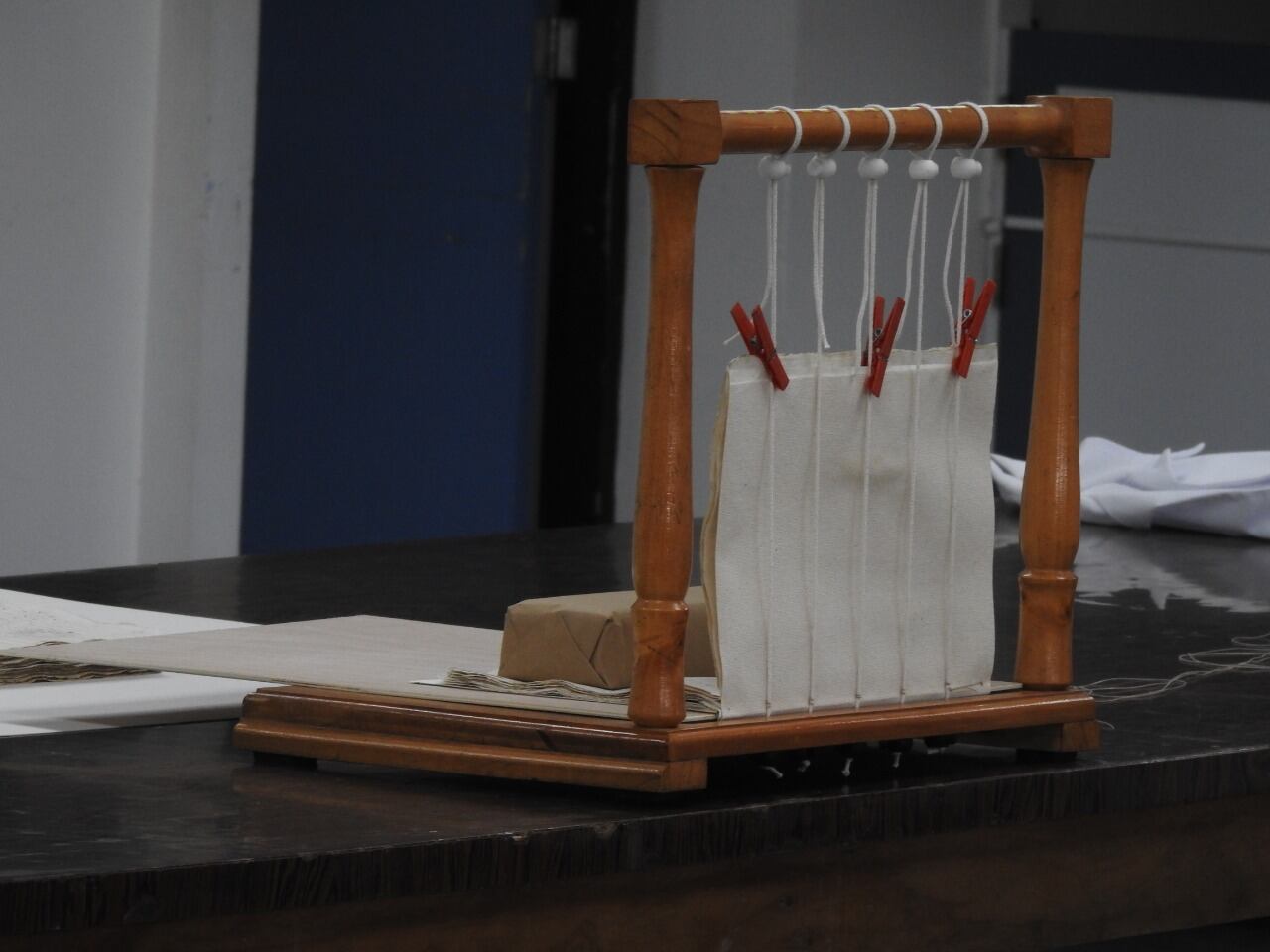 “Determinamos que fue cosido en un bastidor, en el que se atan cordones que quedan verticales y se va cociendo cuadernillo por cuadernillo. En total, nosotros utilizamos cinco cordones con hilo delgado de lino y al final quedó visualmente parecido a la época”, dijo Umaña, dueño del taller El diario de los viajes.