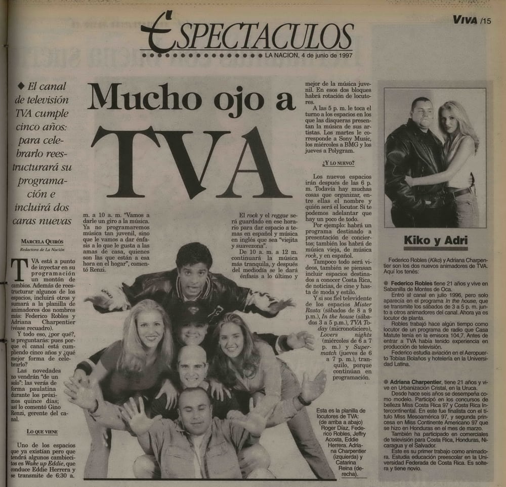 Canal 38 también le apostó fuerte a la música, con Explosión Pop –conducido por el enciclopédico Raúl Saavedra y más tarde por Randall Vargas– y Soy latino , que marcó la llegada a la televisión de la aún vigente Marilin Gamboa.