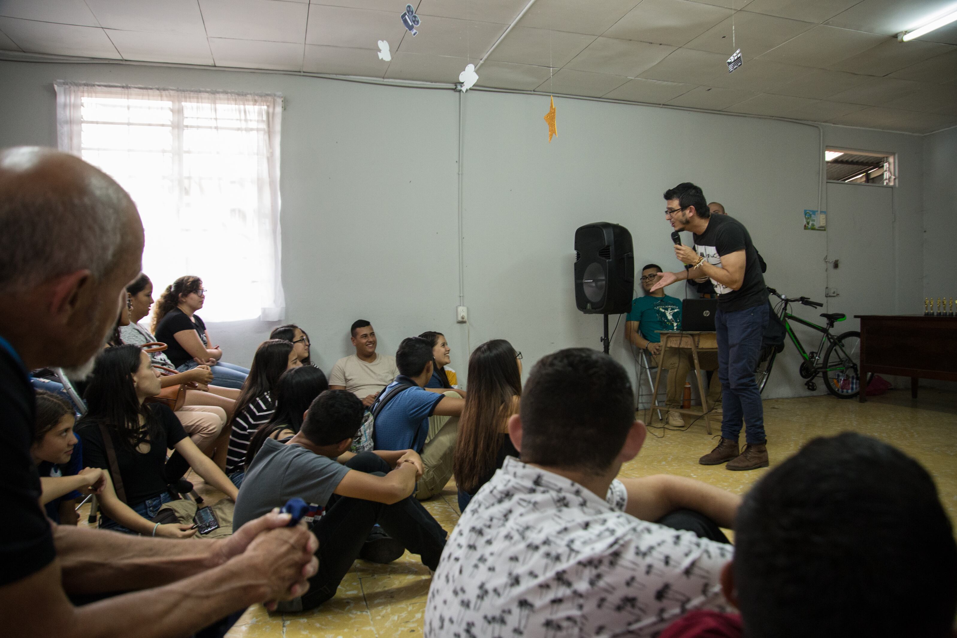 En su propósito de cumplir con esto, Monge comparte con el público el inicio de su camino dentro de esta religión. Recuerda algunas anécdotas, entre ellas la de la primera vez que asistió a una actividad en la que le dieron alimentos a los indigentes o cuando viajó a Guanacaste con un amigo para hablarle a los jóvenes de su relación con Dios.