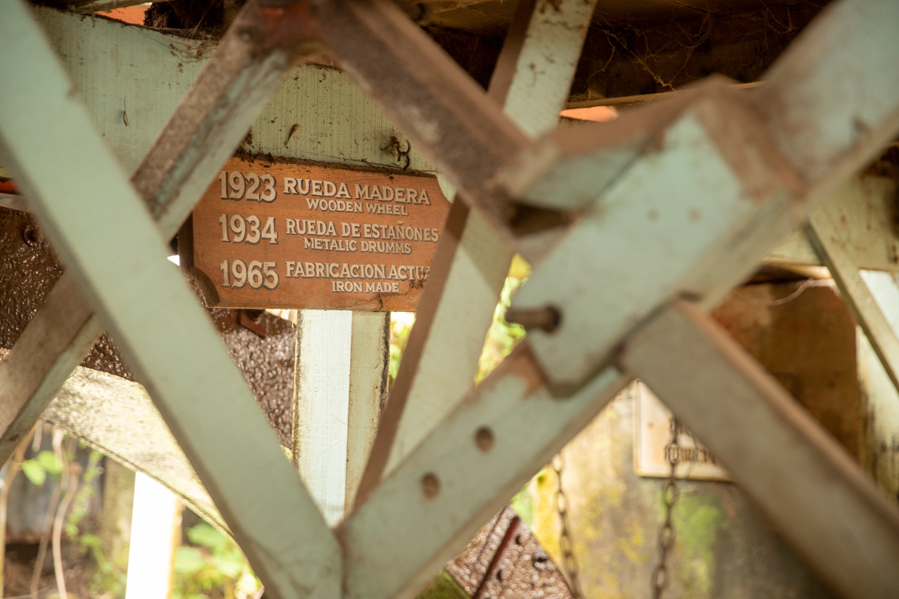 El famoso “molino de agua” ha estado durante toda la historia de este espacio; primero fue una rueda de madera de dos metros, luego, en 1934, funcionó una más grande hecha a partir de estañones y, finalmente, la actual entró en funcionamiento en 1965.