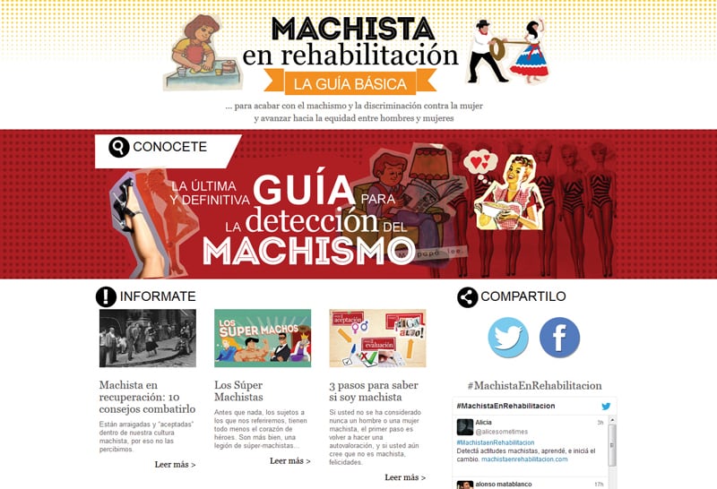 La página también incluye consejos para combatir el machismo, definiciones de los “supermachistas”, historias interactivas y un test .