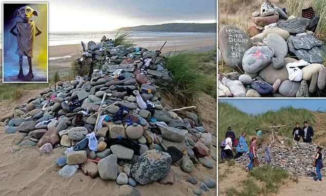 Otro de los sitios más significativos es donde Dobby, el elfo doméstico que acompaña a Harry y a sus amigos desde el segundo libro, fallece. Su muerte fue filmada en la playa de Freshwater West, en Gales, y hoy se encuentran miles de piedras para rendir homenaje al querido personaje.