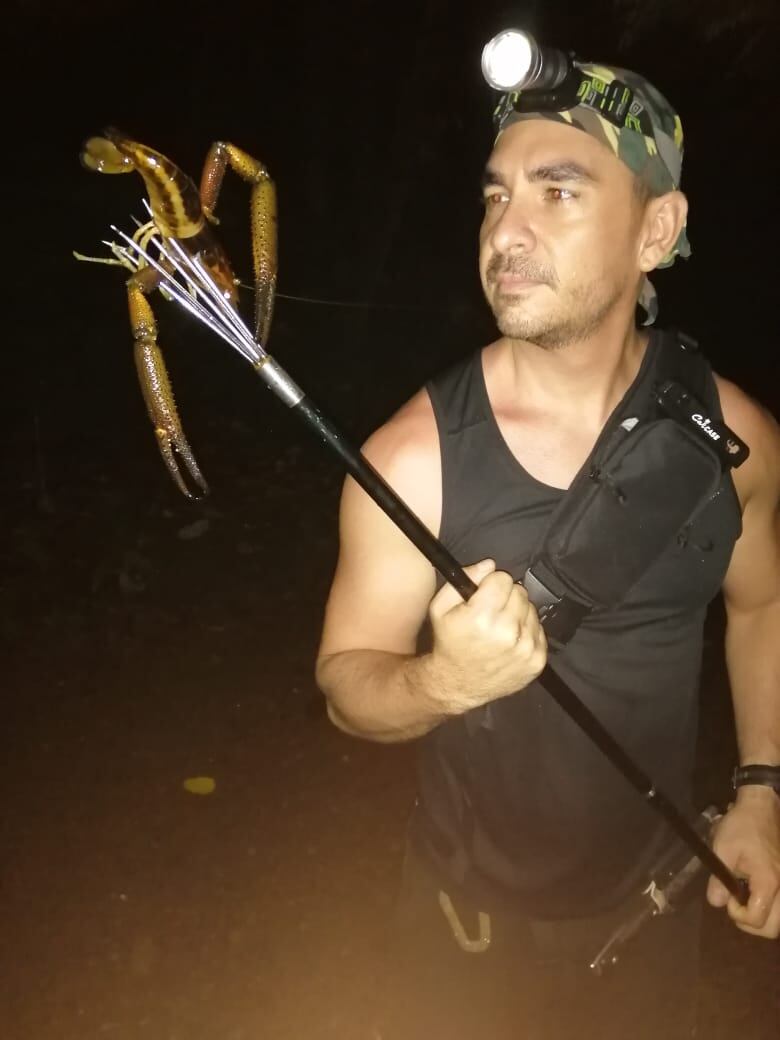 Pero las horas pasan y el hambre apremia. El río, que ya ha bajado su nivel, ofrece peces y camarones como recurso alimenticio de primera calidad, por lo que Alberto aprovecha para practicar sus técnicas de pesca primitiva.