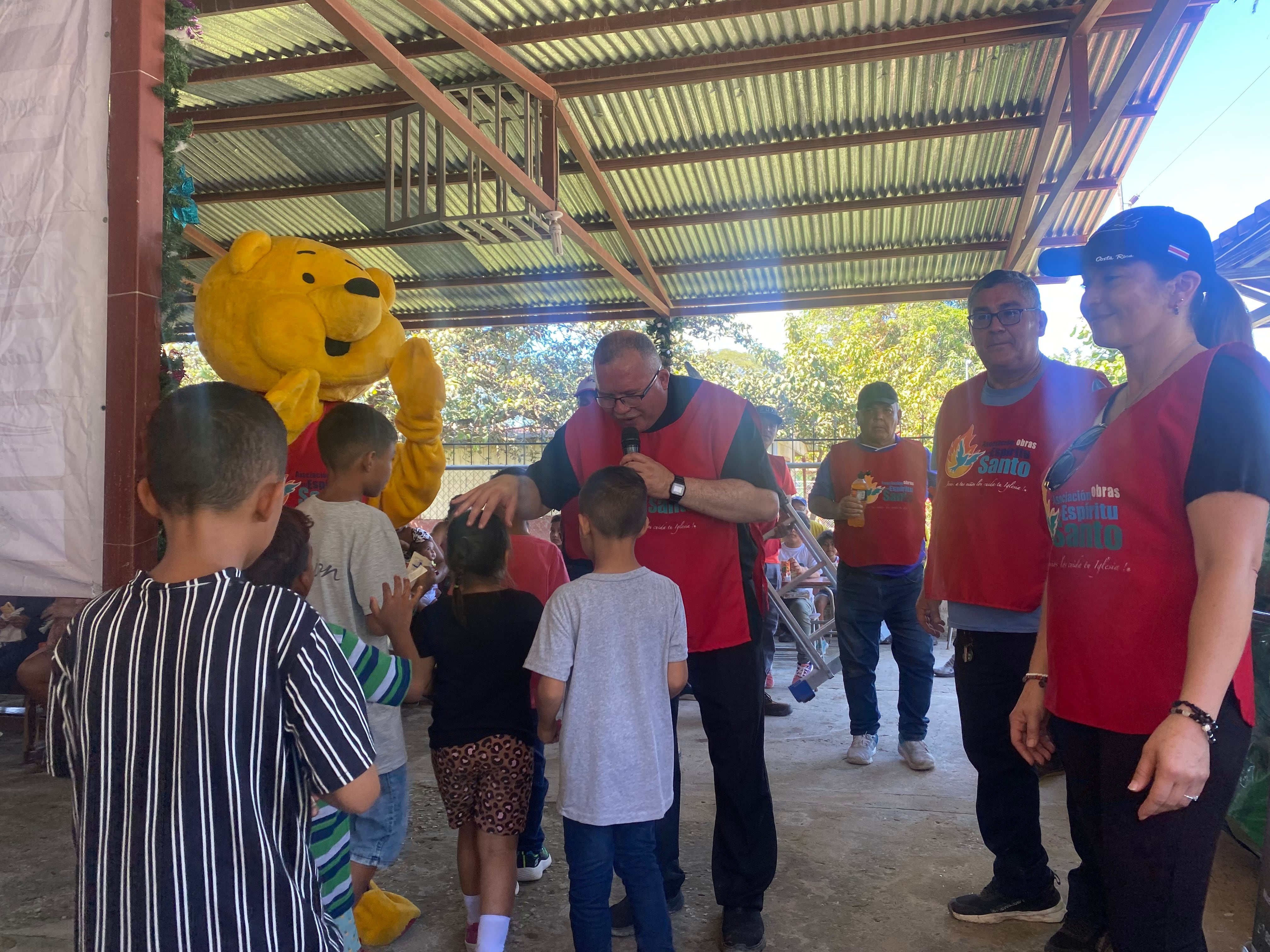 Por otro lado, y sin hacer demasiado ruido, el líder de esta misión, que no es Santa pero sí un señor bonachón que considera que toda la niñez merece una feliz Navidad, está comprándoles golosinas y granos básicos en la pulpería del pueblo. Bien dicen que para todos da Dios y más en este tipo de fiesta que, además de alegría y regalos, trae consigo un mensaje de fe, amor, esperanza y solidaridad. Esa la premisa del Padre Sergio Valverde, quien desde el domingo 18 de diciembre está liderando varias fiestas para 40.000 niños y niñas de Costa Rica.