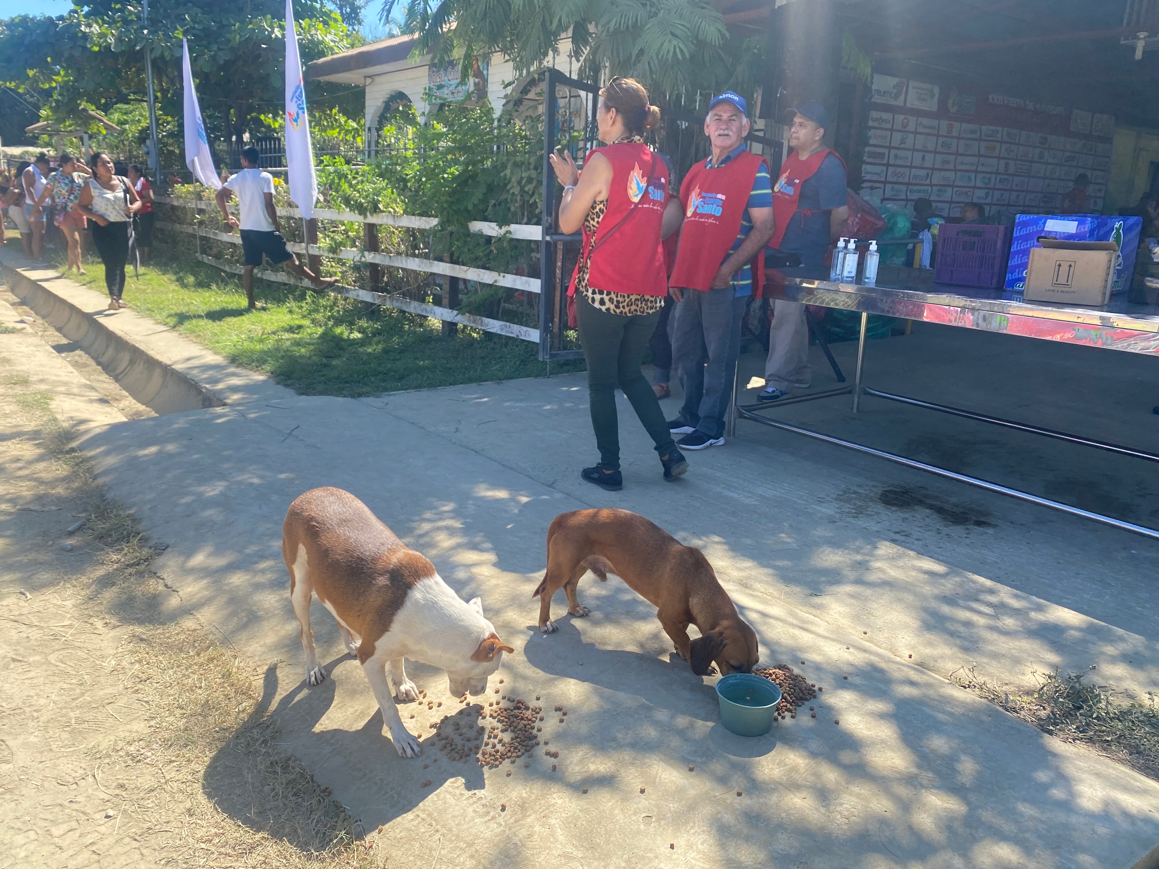 En esta tarde caliente y agradable, hasta los perritos que entraban al lugar recibían un poco de alimento. Es conocido que en zonas tan recónditas y donde muchas familias tienen pocos ingresos, muchas veces las mascotas se encuentran en condiciones no favorecedoras. De la asociación trajeron unos paquetes de comida para los animalitos y al menos cinco fueron alimentados.