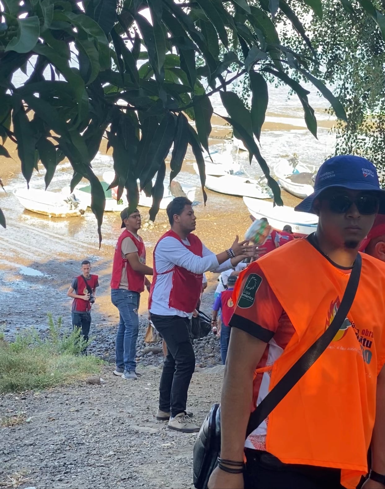 La fiesta estaba ya cerca del final, que es el punto alto de la actividad. Los regalos llegaron y las sonrisas no podían ser más grandes. Se organizaron filas y se pedía que la entrega fuera rápida, pues el evento debía finalizar para recoger todo, limpiar, que los colaboradores almorzaran y salir a tiempo antes de que la marea subiera demasiado. Cada persona se movía con rapidez y era sencillo identificar a quienes eran parte de las Obras, pues llevaban chalecos.
