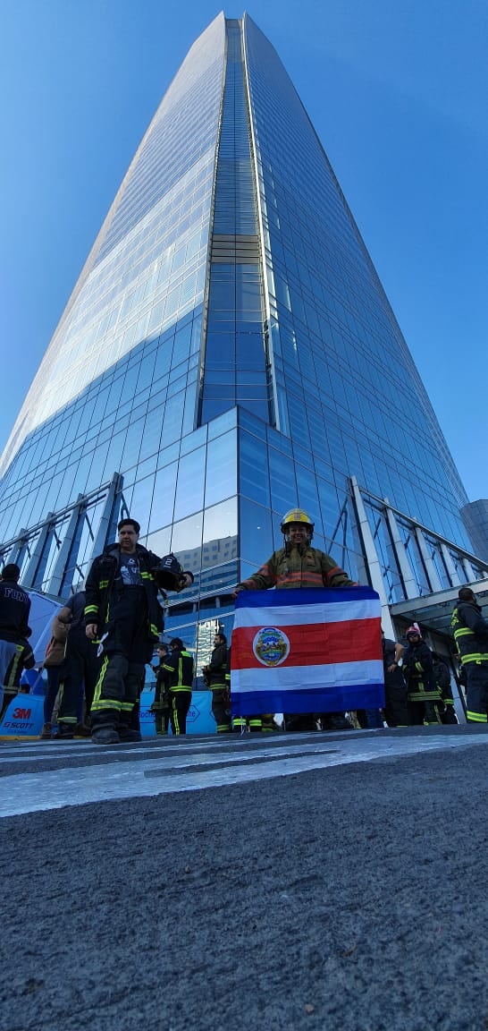 Llegó el mes de setiembre del 2019 y eso la llevó a estar frente a la Torre Costanera, de 62 pisos, ubicada en Santiago de Chile, y entendió que terminar todo el desafío ya sería ganancia, pues tenía que cargar consigo un tanque de oxígeno presurizado más el traje estructural que se utiliza para emergencias, lo que sumaba entre unos 25 y 30 kilos de más.