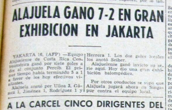 El 23 de noviembre de 1960, este periódico reseñó: “14-7-1 y 12-6-3. No estamos dándoles ningún número telefónico, ni las medidas de una nueva Miss Mundo. Se trata simplemente del récord de Saprissa y Alajuela en la gira mundial”.