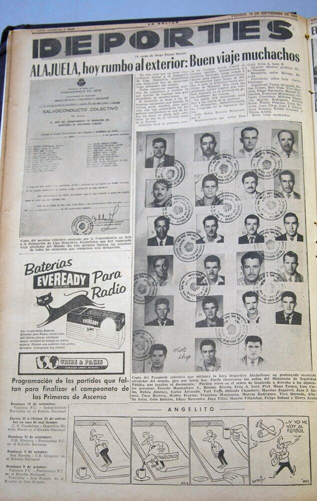 El viernes 16 de setiembre de 1960, la sección deportiva de este rotativo abrió con el titular: “ALAJUELA, hoy rumbo al exterior: Buen viaje muchachos”.