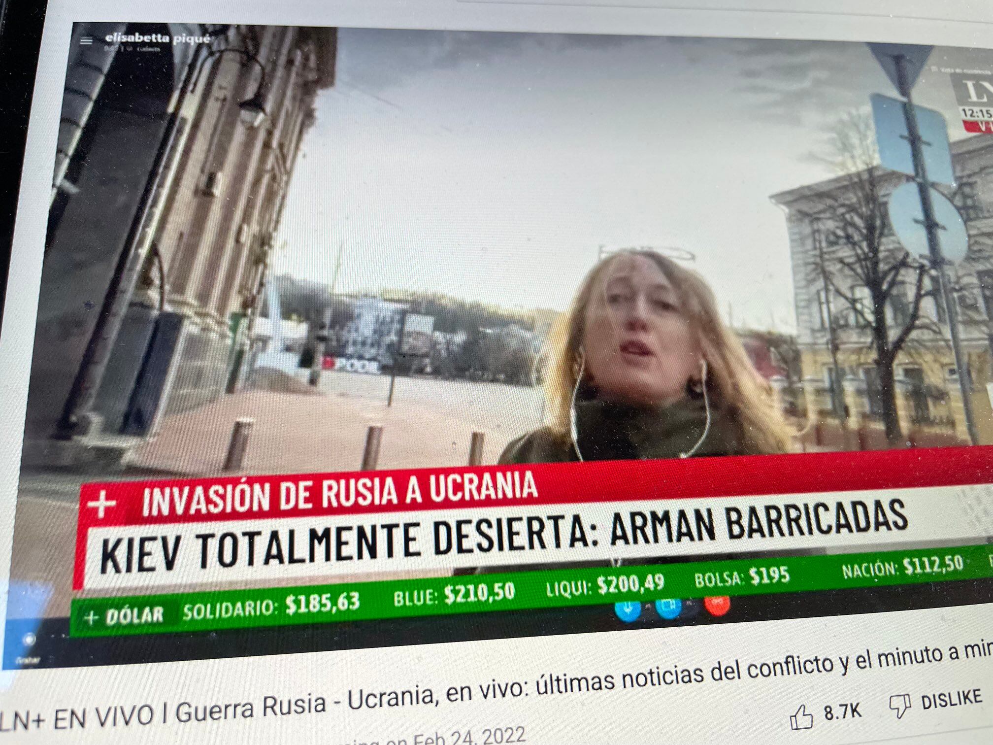“Elisabetta Piqué, la enviada de La Nación de Argentina a Kiev, es una de esas rara avis, una profesional implacable que lleva cubiertas guerras, revoluciones, caídas de regímenes dictatoriales y estruendos de todo calibre y pelaje.