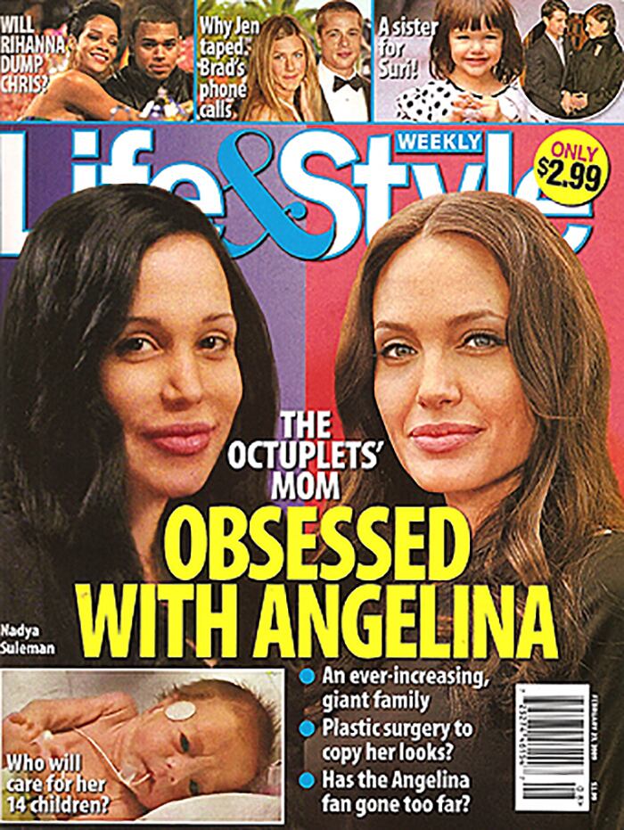 Insisto: era el 2009 y no había posibilidad de que ese caso se diluyera entre las miles de historias surrealistas que empezaron a pulular en las redes sociales, máxime si se toman en cuenta todos los antecedentes, entre ellos, la obsesión de Nadya con Jolie, y el tema principal ¿cómo y por qué se le permitió a una actriz porno de tercera categoría, madre de seis, embarazarse de ocho bebés, solo porque sí?