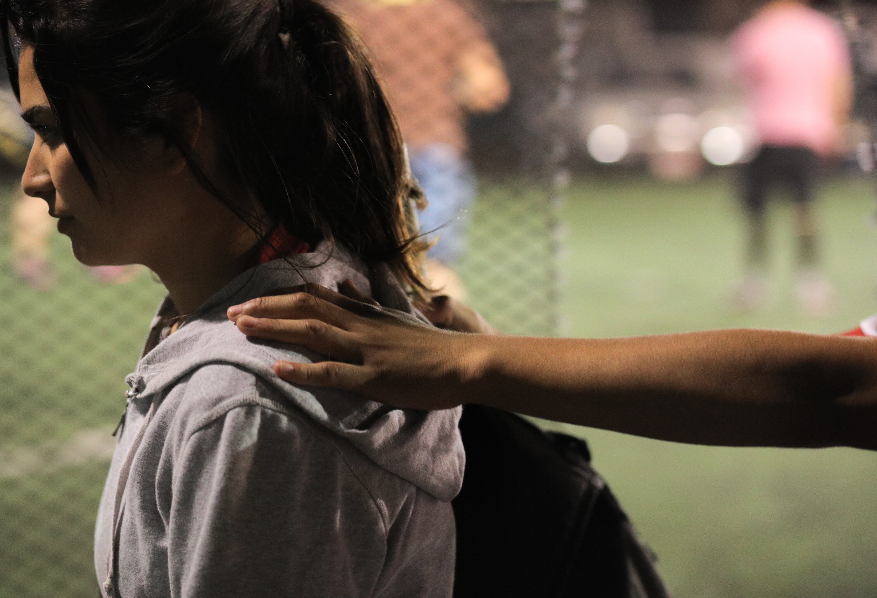 Alison interrumpe la hemorragia con un paño mientras Erickson se lamenta en uno de los poyos de la cancha de fútbol 5. Fernando se acerca a Erickson, se quita la gorra y le golpea la espalda.