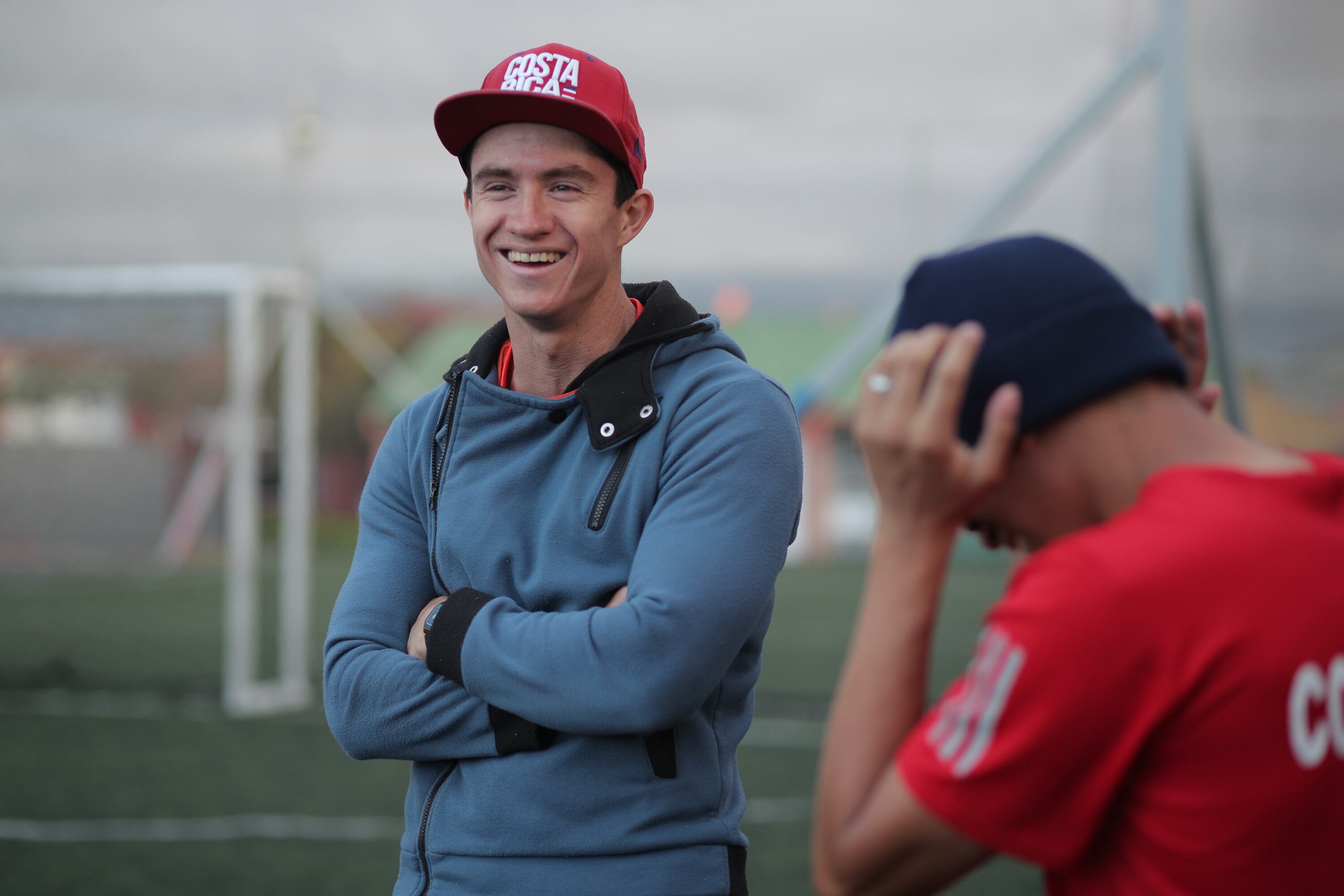 Una vez que Gerald se instala, uno de sus compañeros de equipo toma la bola. Se trata de Daniel Contreras, el capitán del equipo, quien luce mucho más relajado que el resto de jugadores.