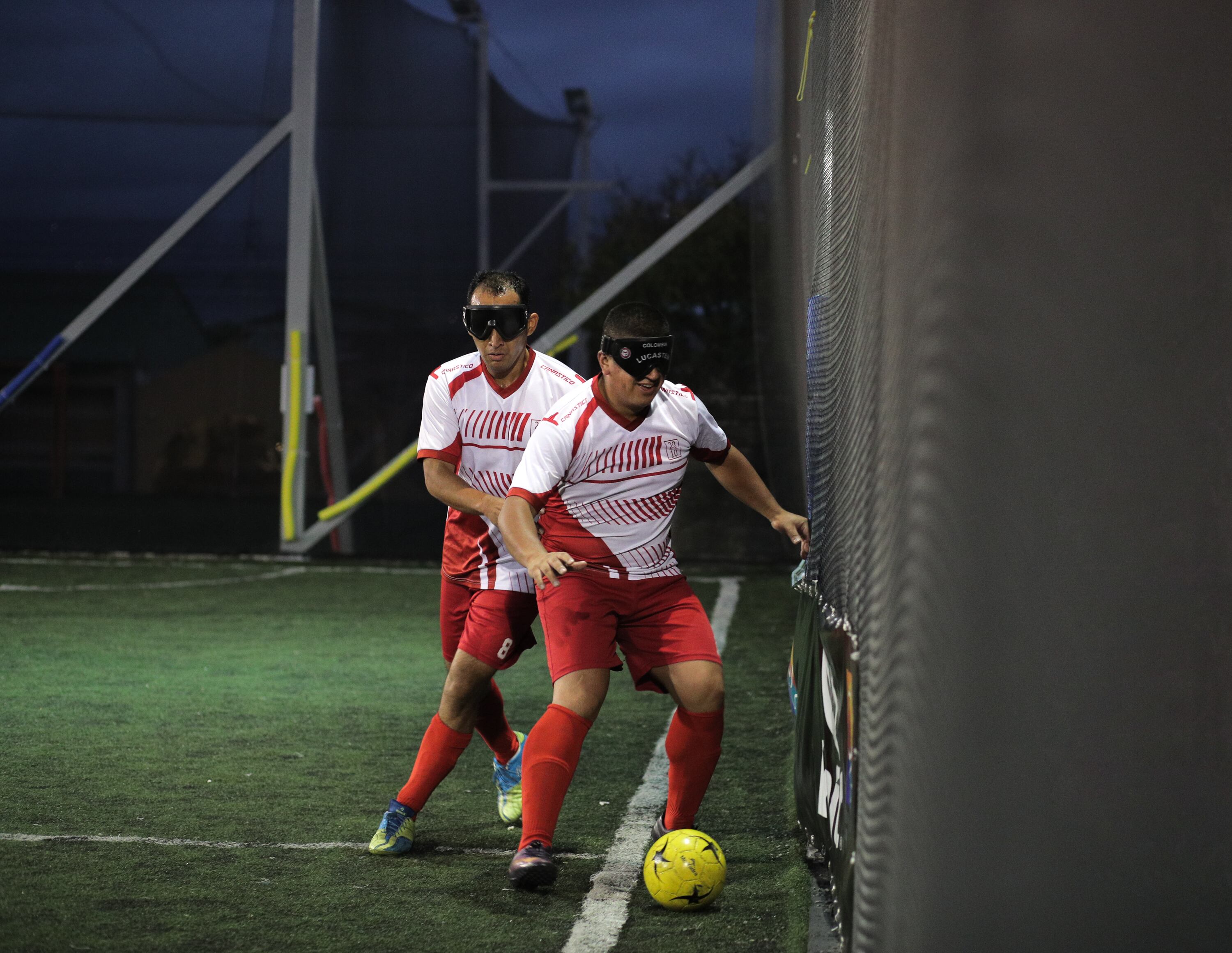 Es llamativo verlos con una especie de antifaces y la explicación tiene todo el sentido: una de las normas del fútbol de no videntes es que todos los jugadores deben entrar al campo vendados porque cada persona tiene un nivel diferente de ceguera.