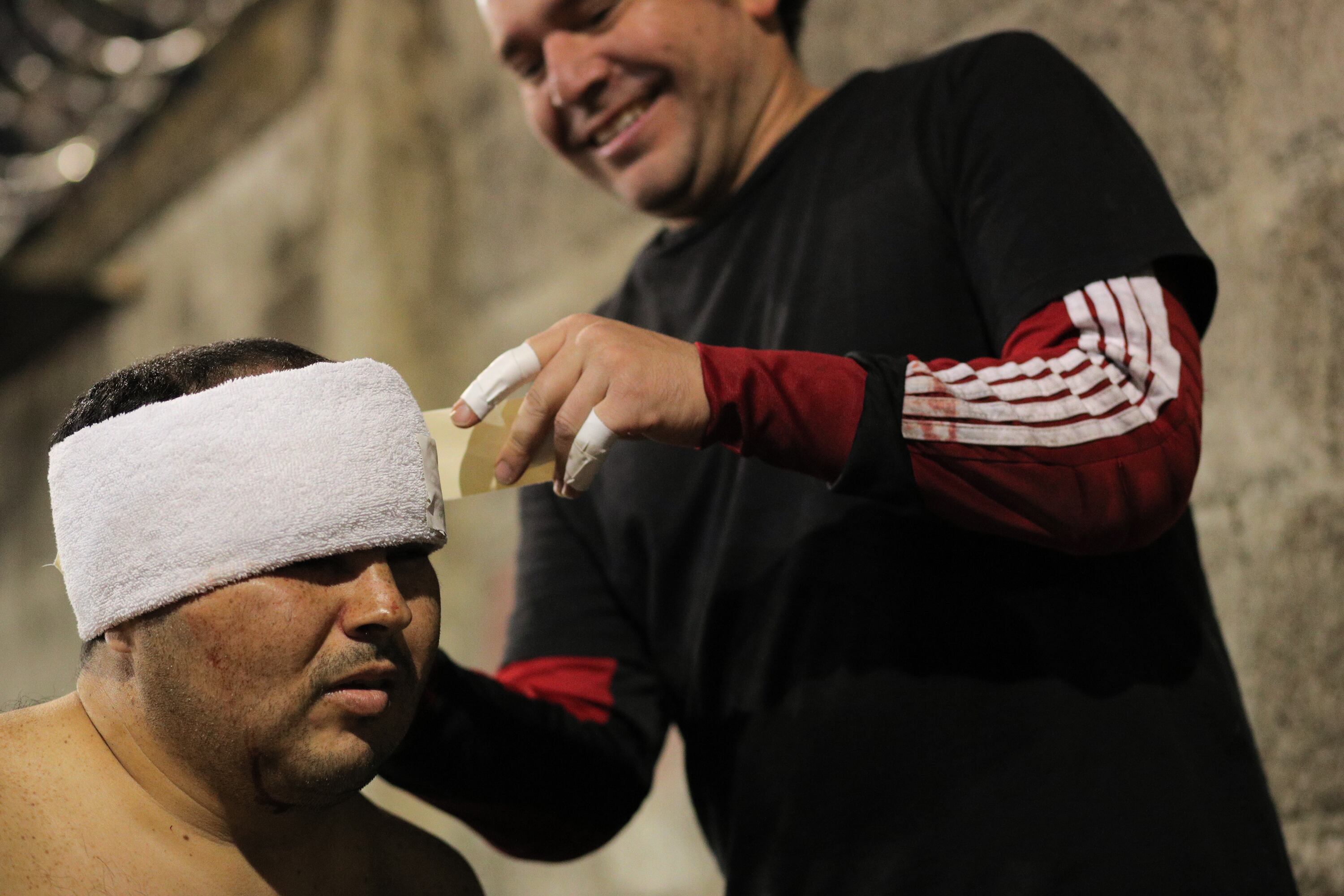 Ha terminado el entrenamiento y Erickson Araya corrió la misma suerte que tuvo Michael en su primer día: su cara está llena de sangre, y no parece ceder si no aparece una aguja e hilo médico.
