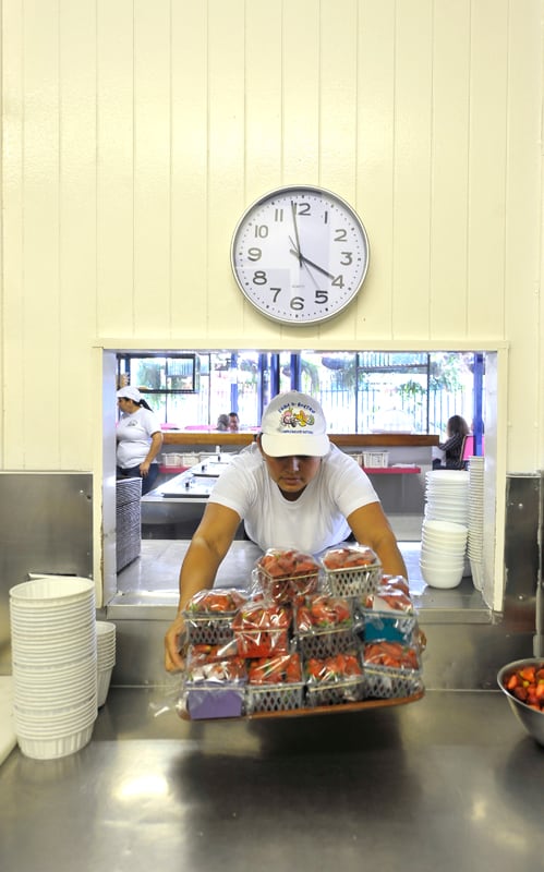 Un fin de semana cualquiera se consumen entre 80 y 85 galones de helado. Se compran 350 kilos de papaya, unos 1.000 bananos criollos y 125 piñas.