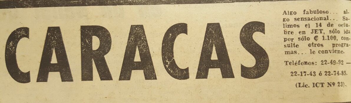 Unos ₡1.100 de la época costaba un boleto en jet a Caracas, por aquello de las exclusividades. Se trataba, nada más y nada menos, que un viaje de lujo a la ‘Venezuela bonita’, a la que por años amaron y hasta envidiaron los ticos.