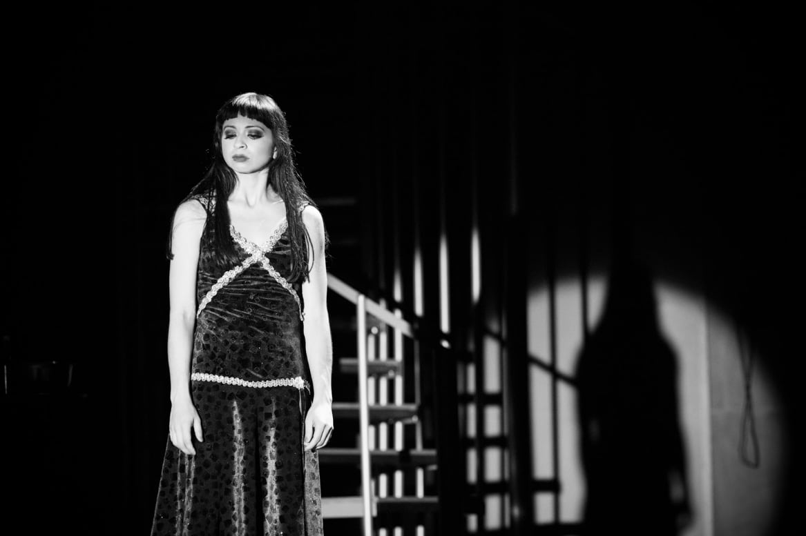 Cuando el bombo de la batería retoma uno de los temas introductorios del musical, aparece ella toda vestida de negro, caminando lento, paso a paso, desde el telón hasta la luneta, y descubriendo su voz frente a un Teatro Nacional de Costa Rica convertido en Kit Kat Club.