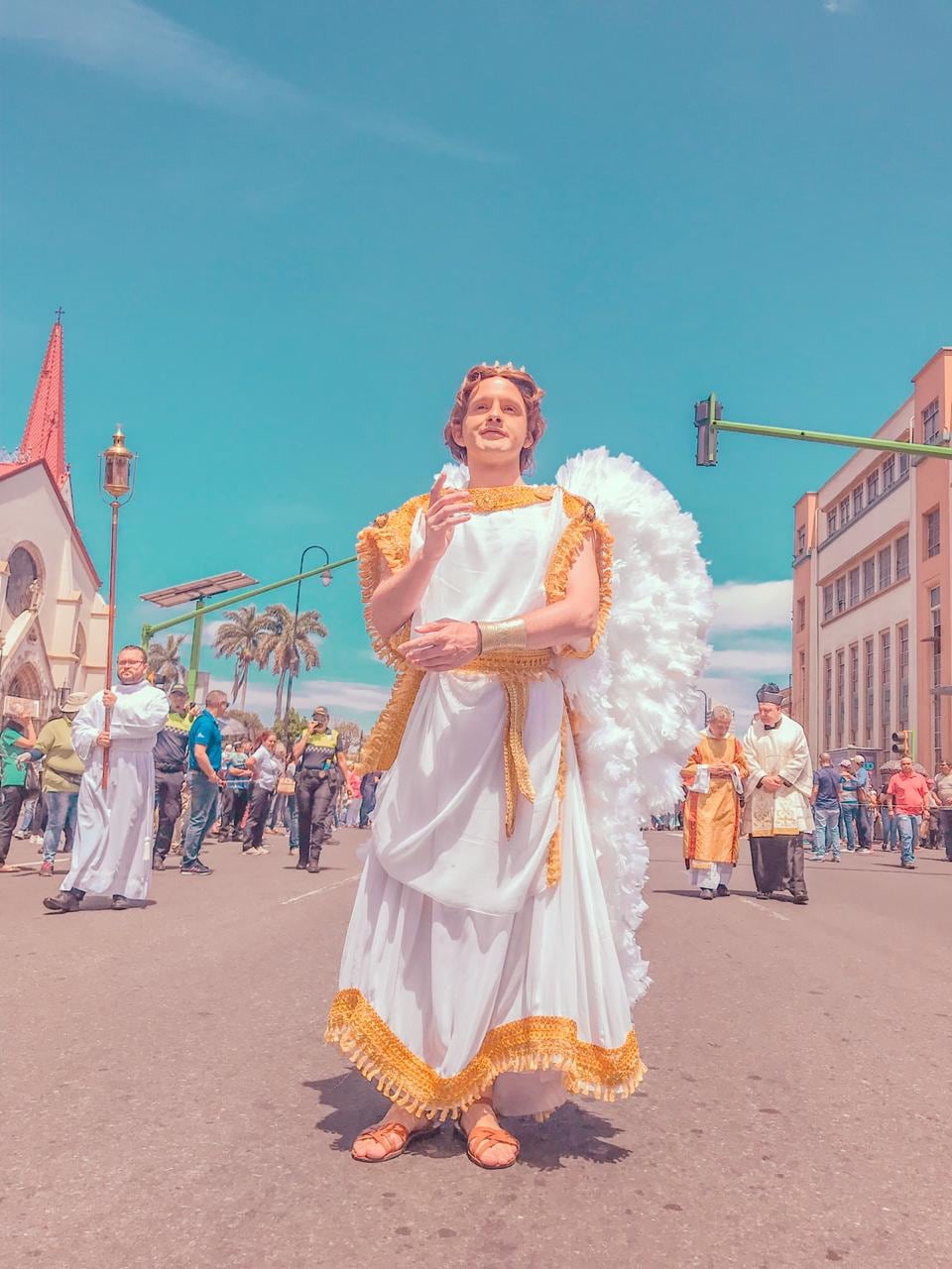El vecino de Heredia aseguró que el principal reto actoral de la interpretación siempre fue mantener la postura cargando en la espalda unas alas con peso importante y tener firmeza en sus manos, en las que llevaba una copa.