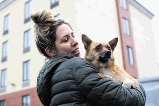 Se llama Stephanie. Es peluda, blanca y tiene ojos cansados. Mientras un voluntario de Humane Society International (HSI) le acaricia la cara ella se acurruca sobre su pecho. Parece agradecer el gesto.