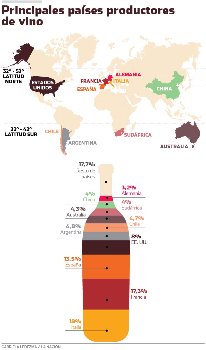 Tradicionalmente, los vinos eran producidos en países como Francia, España y Portugal, lo que se conoce como el Viejo Mundo. Sin embargo, las movilizaciones provocadas por las guerras en Europa hicieron que las personas llevaran la vid a nuevas tierras y así fue como empezaron a surgir otros territorios productores de vino. Hoy en día, se precian los vinos de Nueva Zelanda, China, Argentina, Chile y Estados Unidos. Contrario a lo que se cree, los vinos del llamado Nuevo Mundo no tienen que envidiarle nada a los de los viejos territorios y se pueden encontrar excelentes vinos en ambas partes.