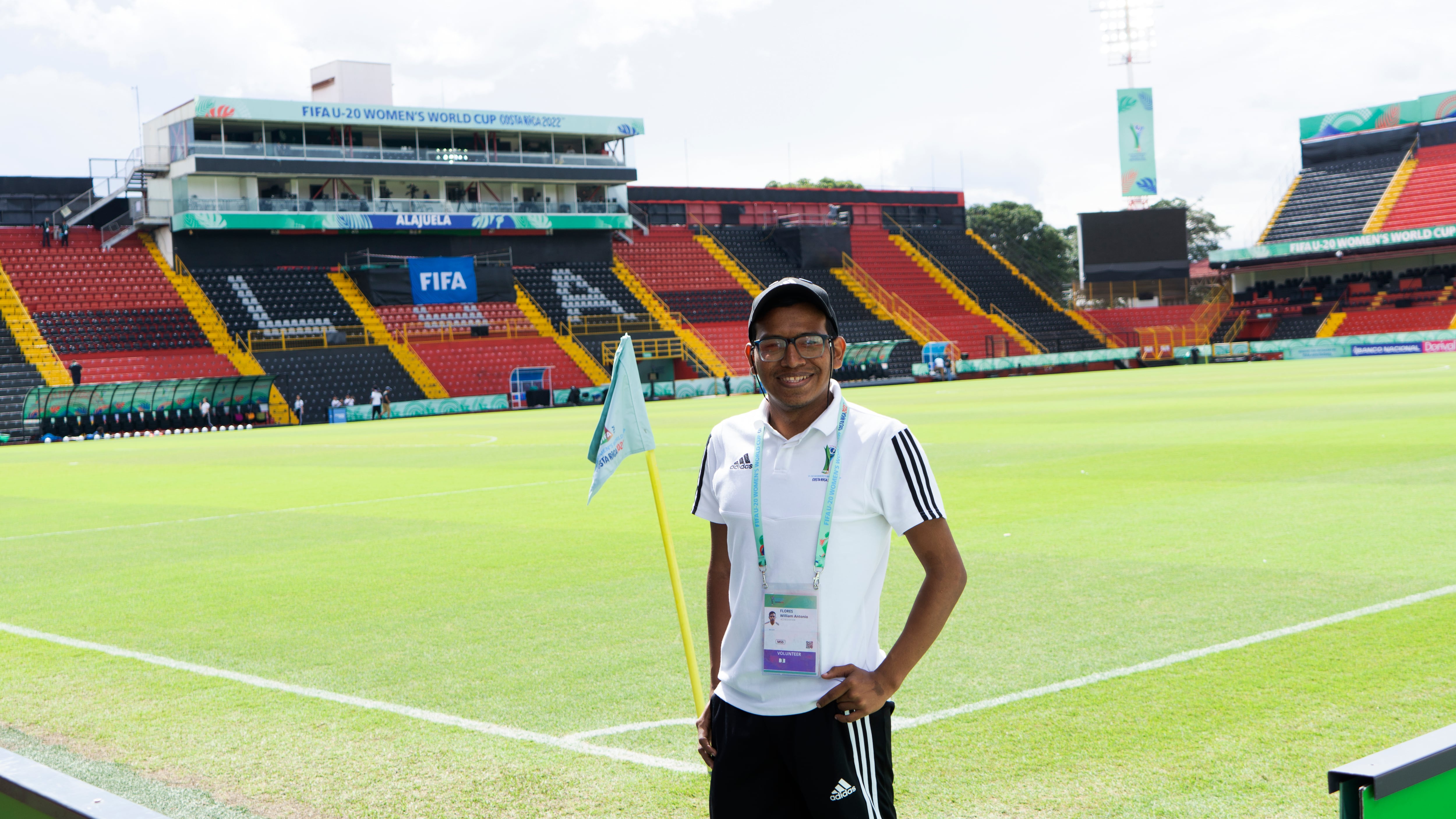 En la entrada del Estadio Nacional, siempre atento y servicial, está Billy Cordero, quien a sus 18 años es uno de los más jóvenes voluntarios del Mundial. Apasionado por el deporte y oriundo de San Vito de Coto Brus, vigila el ingreso del transporte. Billy se inspiró de un video de una voluntaria, quien participó en las Olimpiadas Tokio 2020.