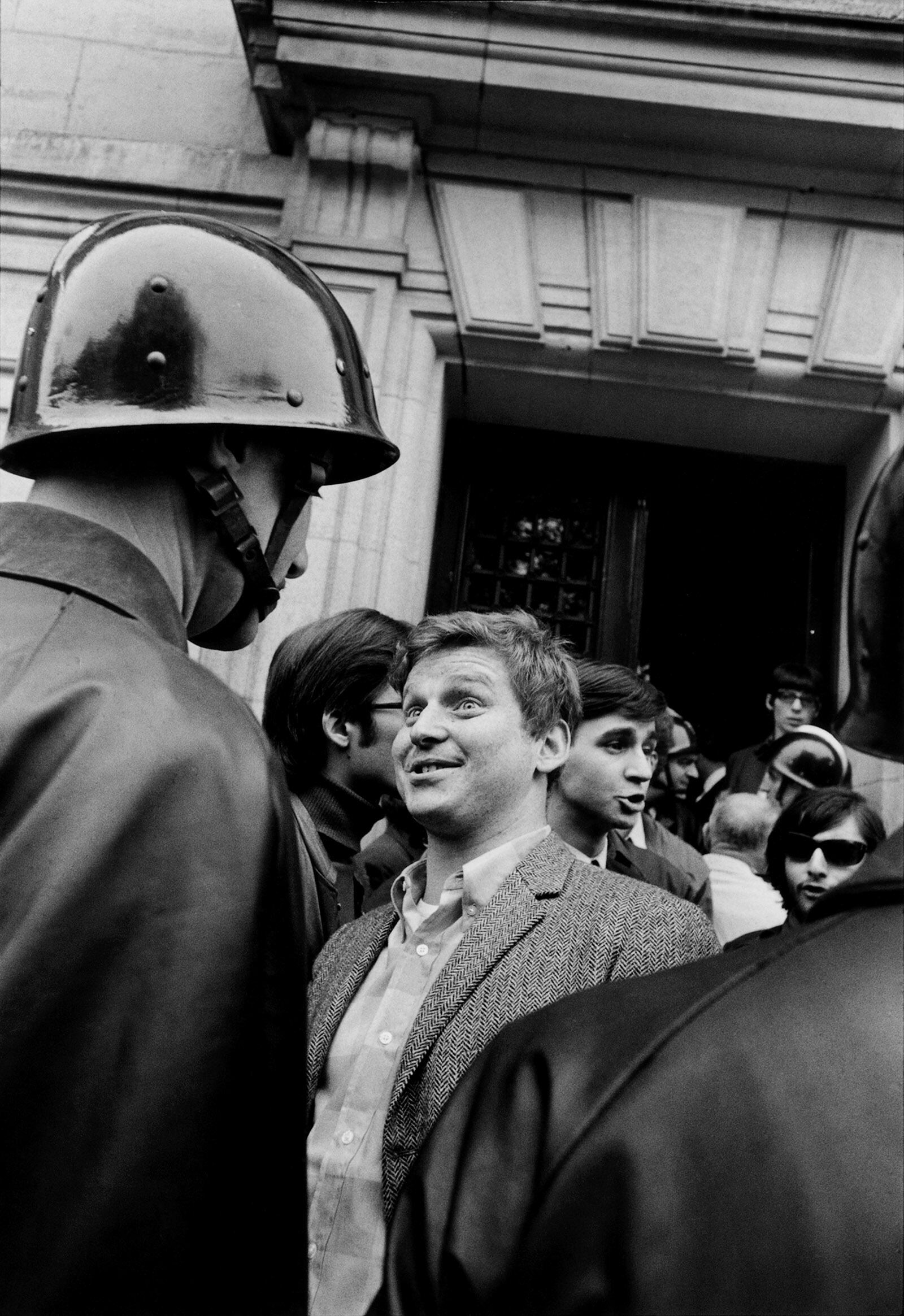 Días después de peleas continuas, Conh Bendit aparece en una fotografía sonriente, frente a varios policías armados hasta los dientes para amedrentar los disturbios.