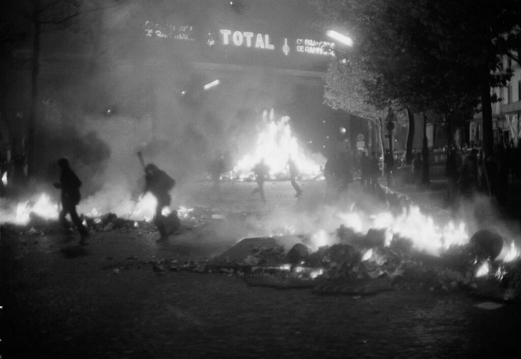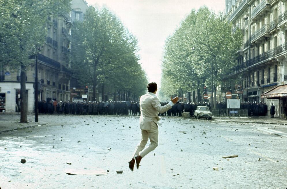 Las manos de los protestantes alzan los adoquines del empedrado de los bulevares del Barrio Latino. Carros volcados, calles bloqueadas, incendios inflamados por la gasolina hedionda de las bombas Molotov.