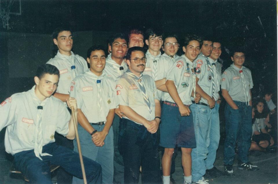 Munguía empezó su vida scout en Tres Ríos, en la unidad 180, durante su etapa escolar. Ya en el colegio, lo invité a que me acompañará a las reuniones del grupo 27, de Curridabat. Ahí llegó un sábado en la tarde para quedarse, siendo hoy uno de los scouts más célebres y celebrados que ha pasado por el parque de Curri.