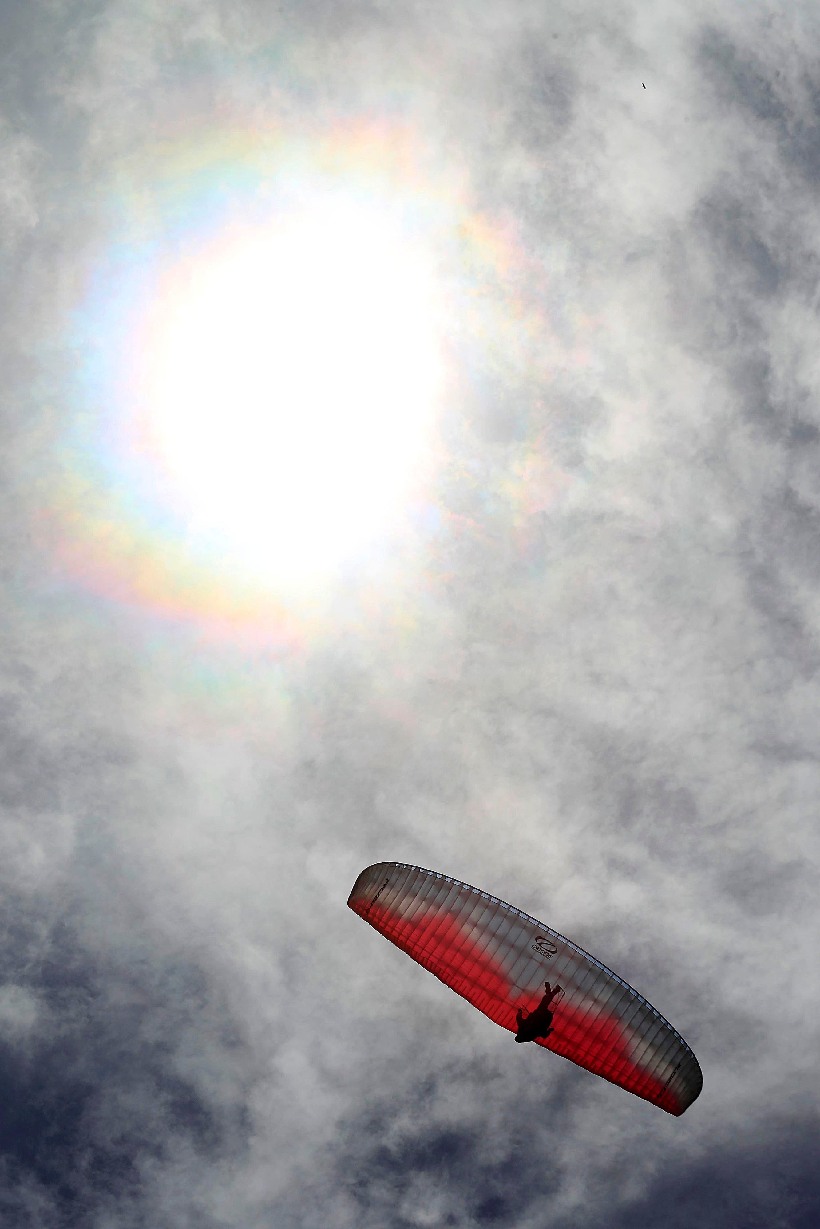 En el cielo permanecen algunas nubes lejanas pero el sol comienza a calentar. Las condiciones son óptimas para practicar este deporte de vuelo libre.