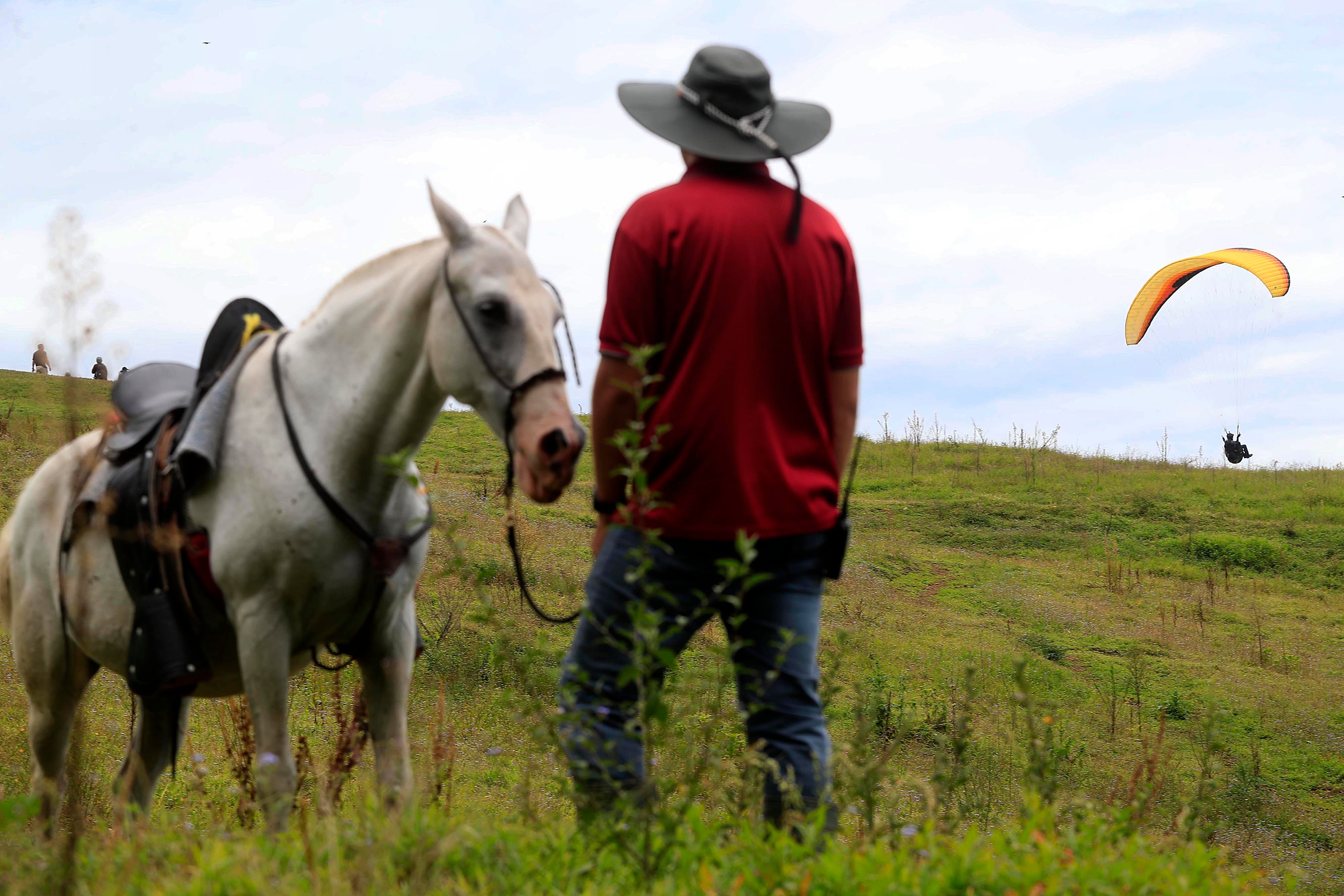 De repente, esa tranquilidad se rompe en una singular y bella planicie, ubicada sobre una de las lomas de la finca Miravalles. Poco a poco comienzan a llegar pilotos de parapente dispuestos a sobrevolar la pintoresca zona ganadera, a casi 2.000 metros de altura.