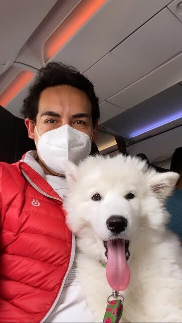 “Sacar los papeles de Bruno fue un proceso tenso, había que sacar una certificación del veterinario que garantizaba que el perro estuviera en buenas condiciones, el hecho de que estuviera pequeñito todavía facilitó el trámite con la aerolínea, hasta una evaluación psiquiátrica me hicieron en medio de la cuarentena, pero al final todo salió bien y me autorizaron traerlo conmigo... no sé qué habría pasado si me hubieran dicho que no. Bruno se convirtió no solo en mi compañero de viaje, sino en mi acompañamiento emocional porque viera qué difícil pasar por un aeropuerto en estos tiempos, es un escenario totalmente apocalíptico, por más que uno sabe lo que está pasando, pasar por un aeropuerto ahorita... es como si hubiera pasado una guerra nuclear... el protocolo incluye que el carro que lo trae a uno lo deja como a 100 metros, no puede ingresar al área aeropuertaria, entonces yo con las maletas y el perro, a pie... esto no son quejas, lo cuento para explicar que en medio de tantísimos cambios en todas las rutinas, la de viajar es completamente diferente y aunque uno ya sabe, otra cosa es vivirlo”, reflexiona Carlos.